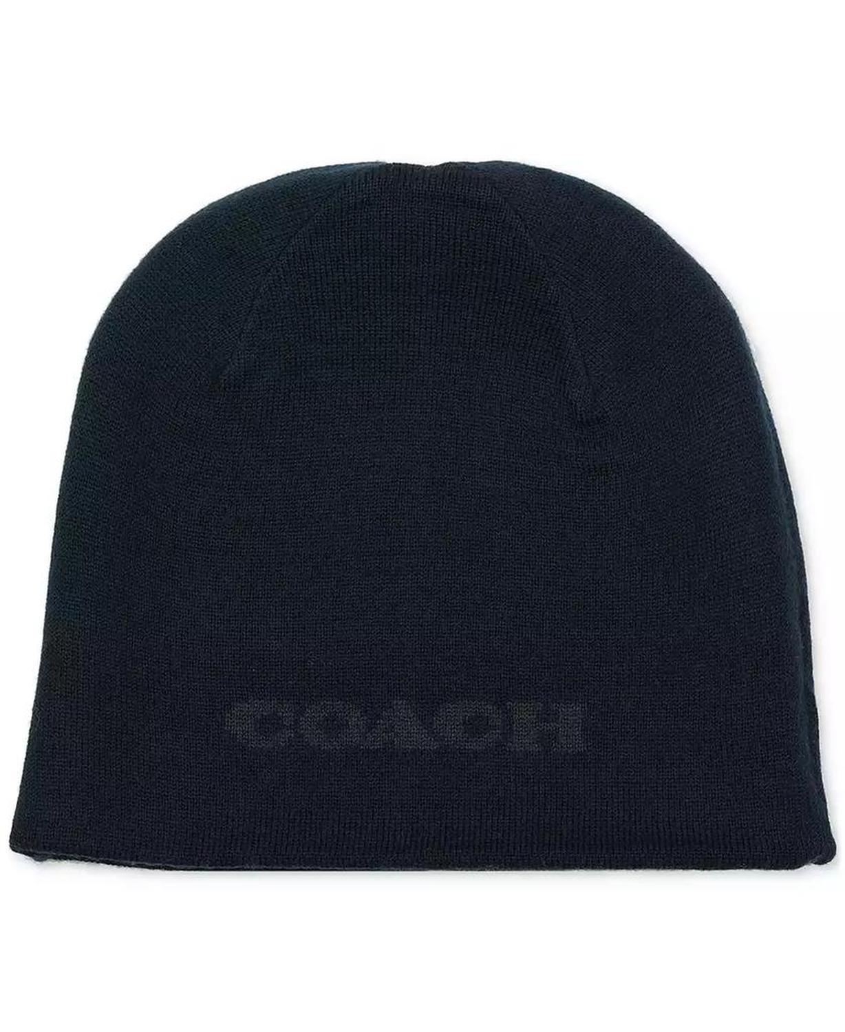 • This warm beanie offers two looks in one. It reverses from the Coach signature on one side to a solid on the other.