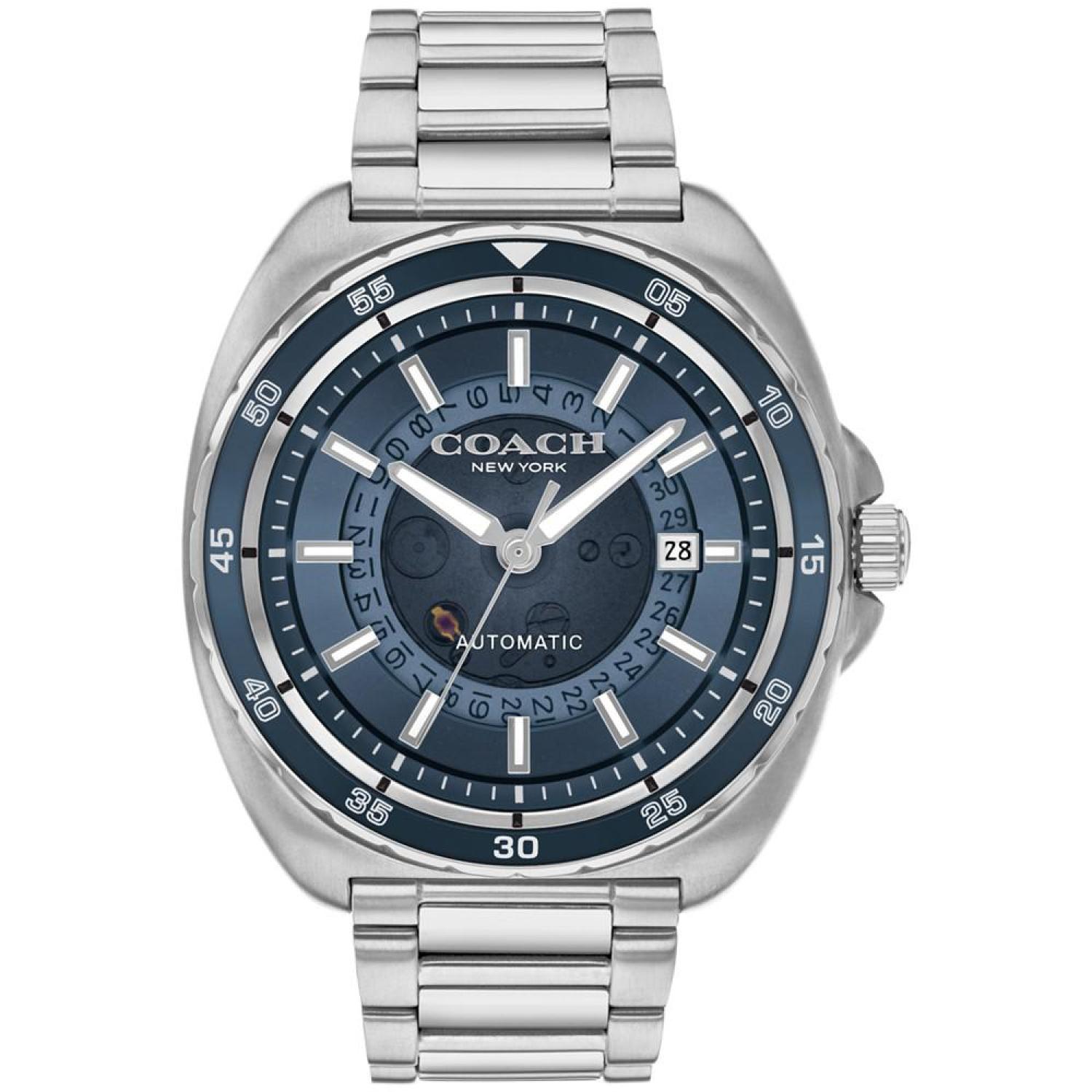 • Designed for life on the move, Charter is a sporty multi-function watch made for adventure. This stainless steel design features a gradient navy tinted dial with a sunray track and a date window at 3 o’clock. The open case back window showcases the automatic movement. Style 14602711