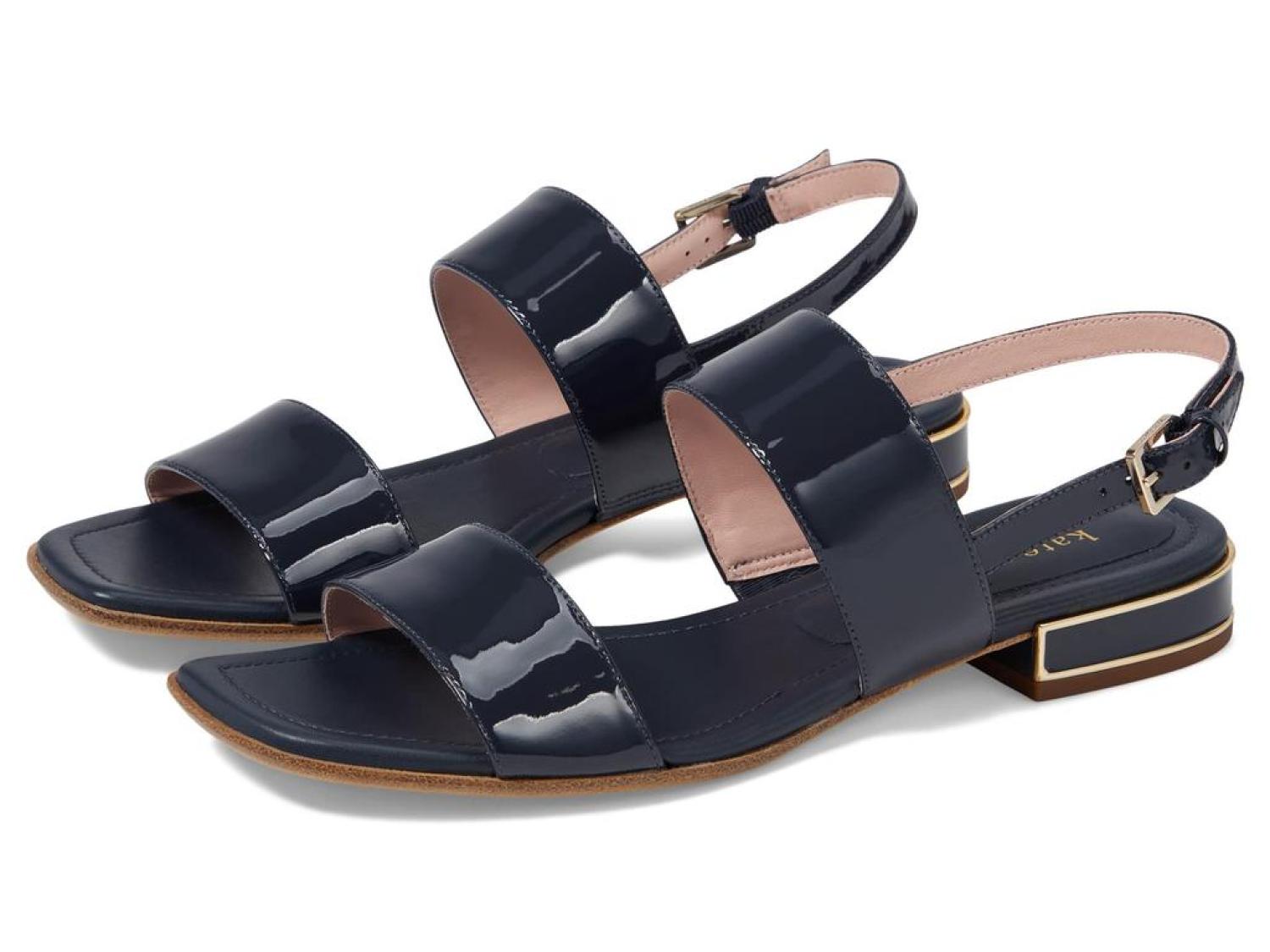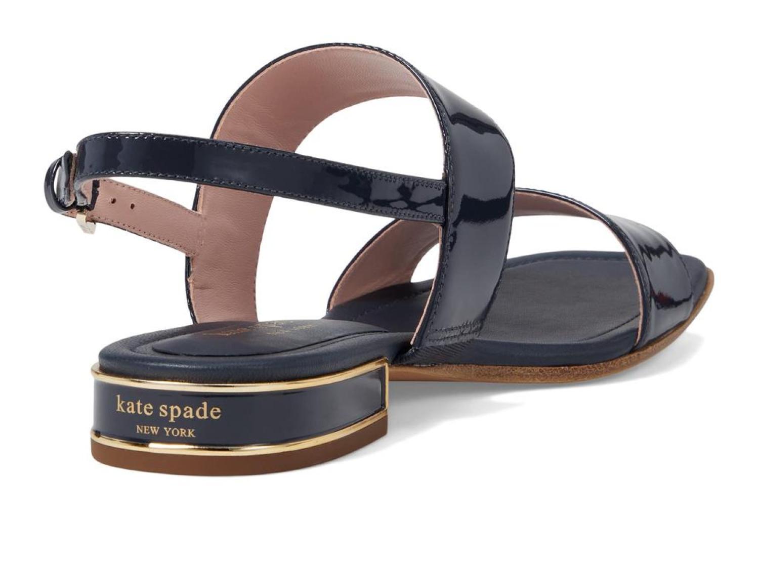 • Defined by sleek upper straps, an open square toe, and a low heel, the Kate Spade New York® Merritt Sandals bring on a striking blend of fashion and comfort.