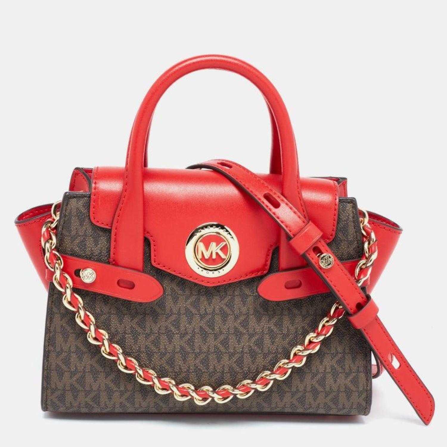 Michael Kors /brown Signature Coated Canvas And Leather Extra Small Carmen Satchel