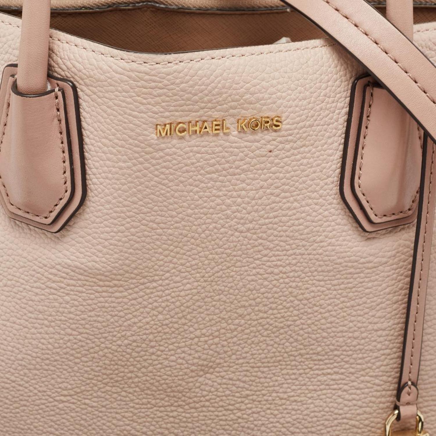 Stylish and easy to carry this designer leather satchel will be a fine choice for work or after. Lined with fabric this pre owned MK bag can easily fit all your essentials. It can be held in your arm or hand using the two handles.