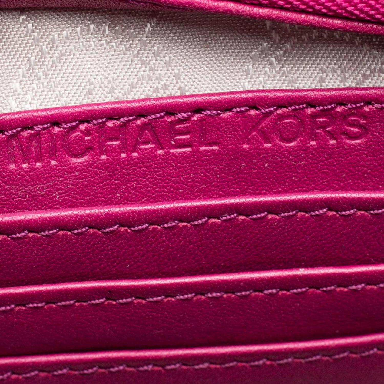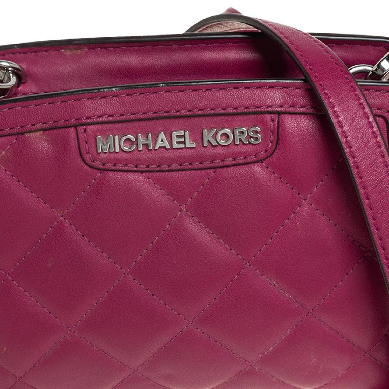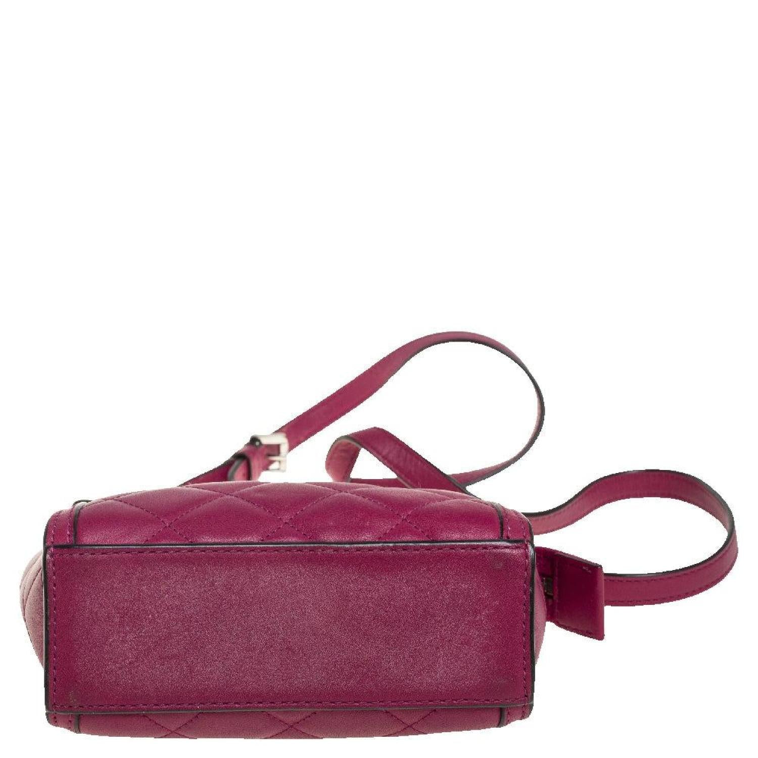 • This adorable Selma bag from Michael Kors is both elegant and fashionable. Crafted from fuchsia quilted leather the bag features a detachable shoulder strap. The fabric lined interior houses a pocket and will hold your essentials. This exquisite bag will complete all your evening ensembles.