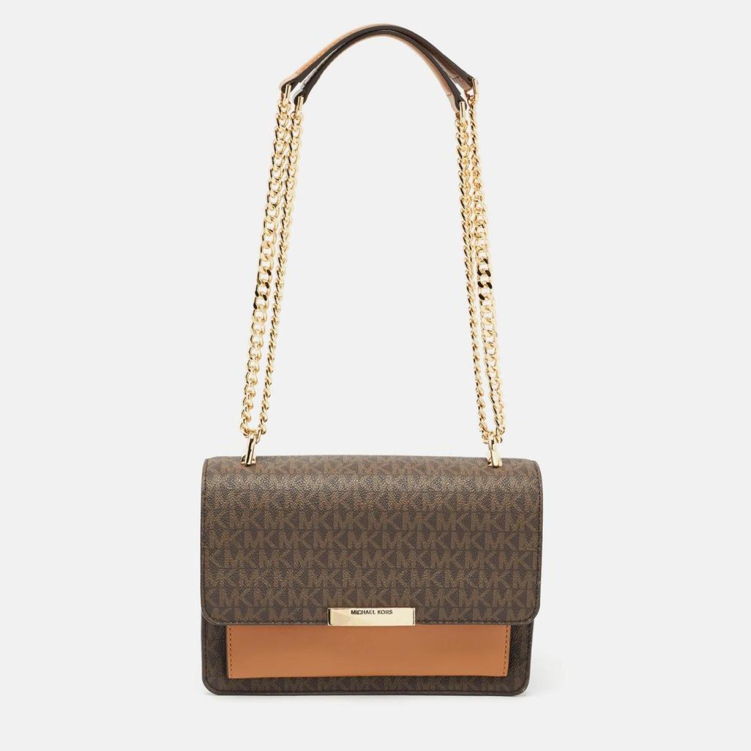 Michael Kors Signature Coated Canvas And Leather Jade Shoulder Bag