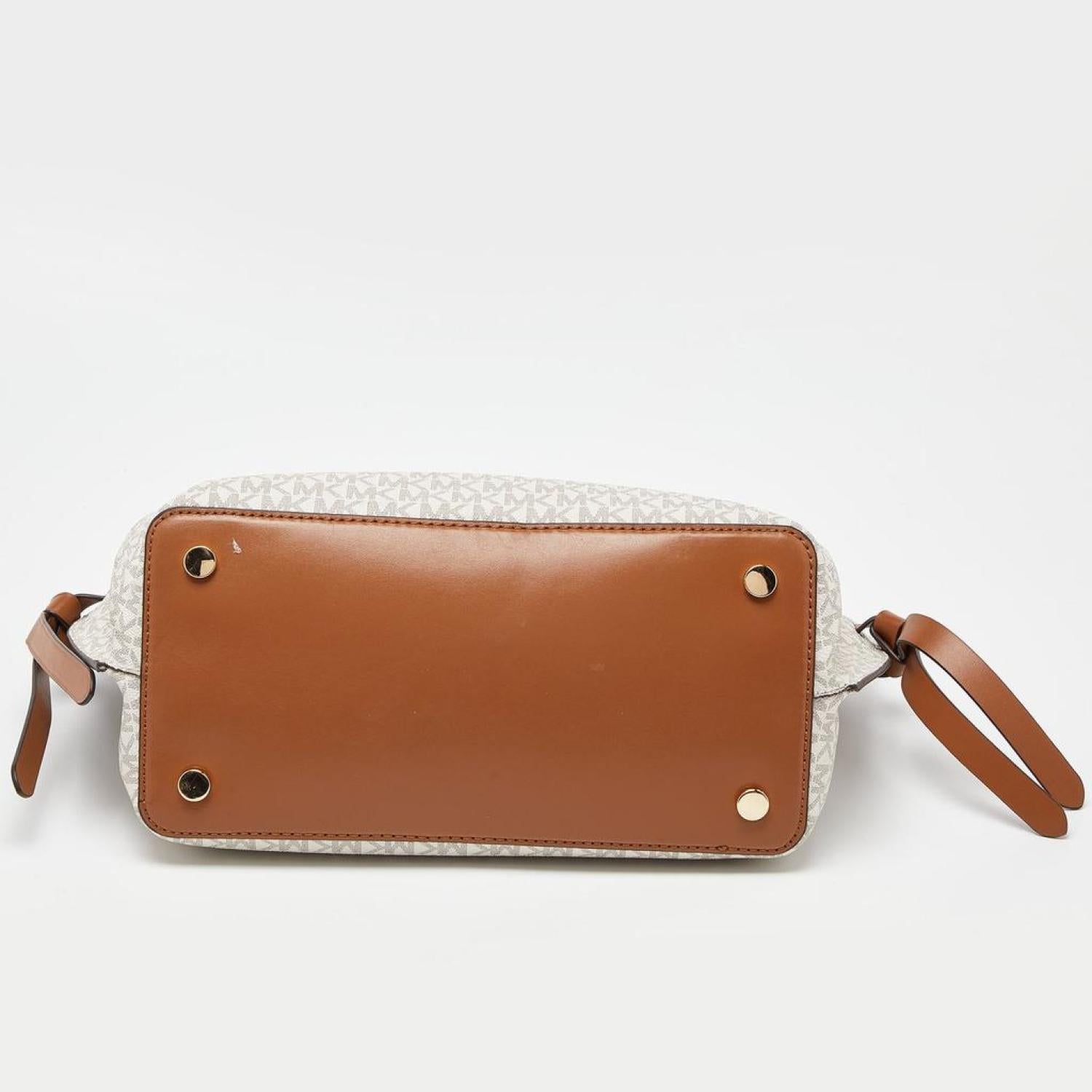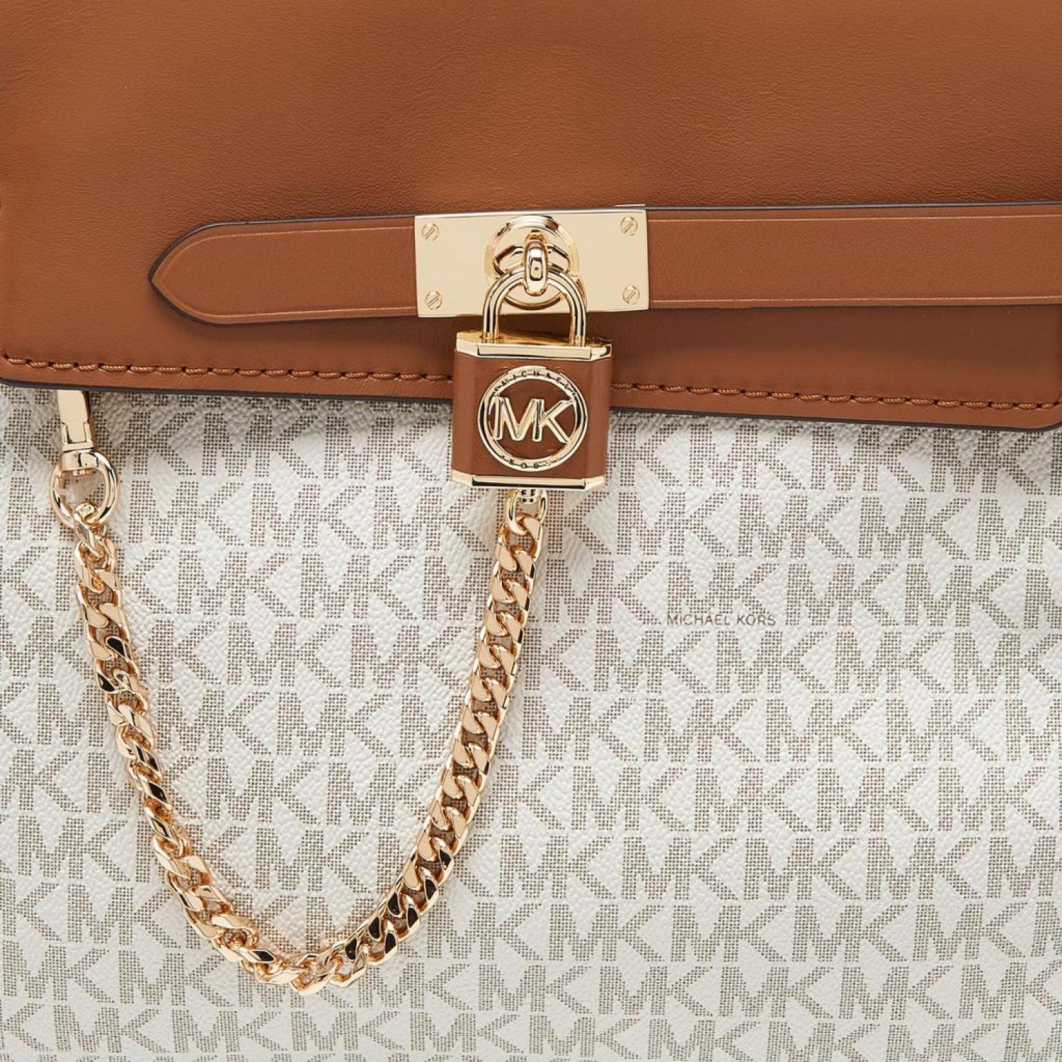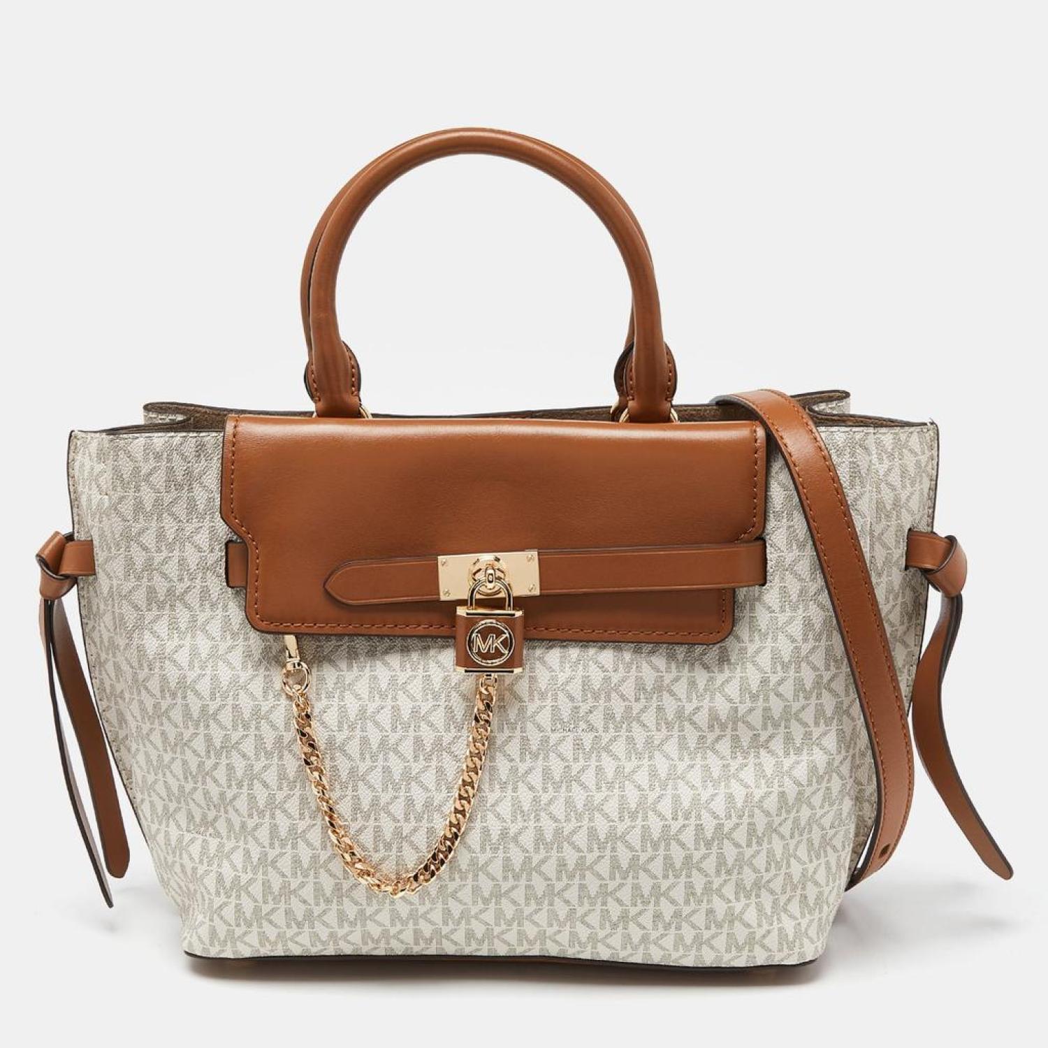 Michael Kors Vanilla/tan Signature Coated Canvas And Leather Hamilton Legacy Belted Tote