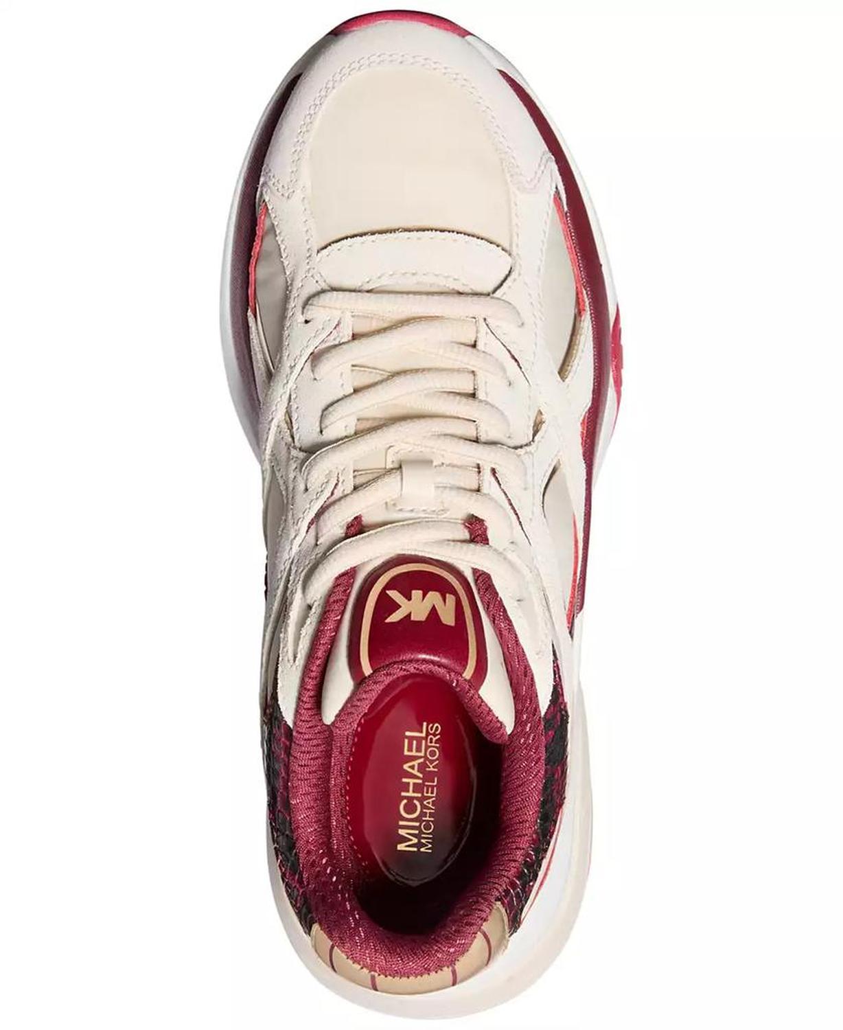 The MICHAEL Michael Kors Leo sneakers are a sporty trainer primed for adventures from peaceful park trails to busy city streets. Wedge heel: 2" Almond toe Lace up Upper: suede, fabric or suede, fabric, leather; lining: 100% polyester; sole: 100% rubber Imported