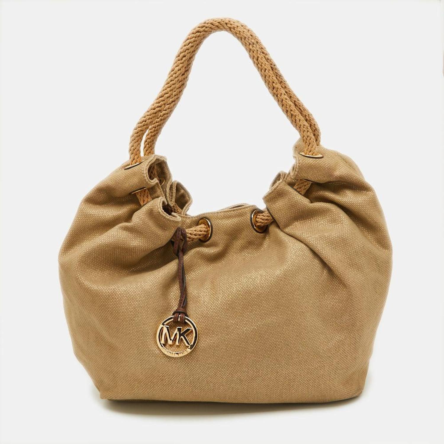 Michael Michael Kors Beige Metallic Canvas Ring Tote