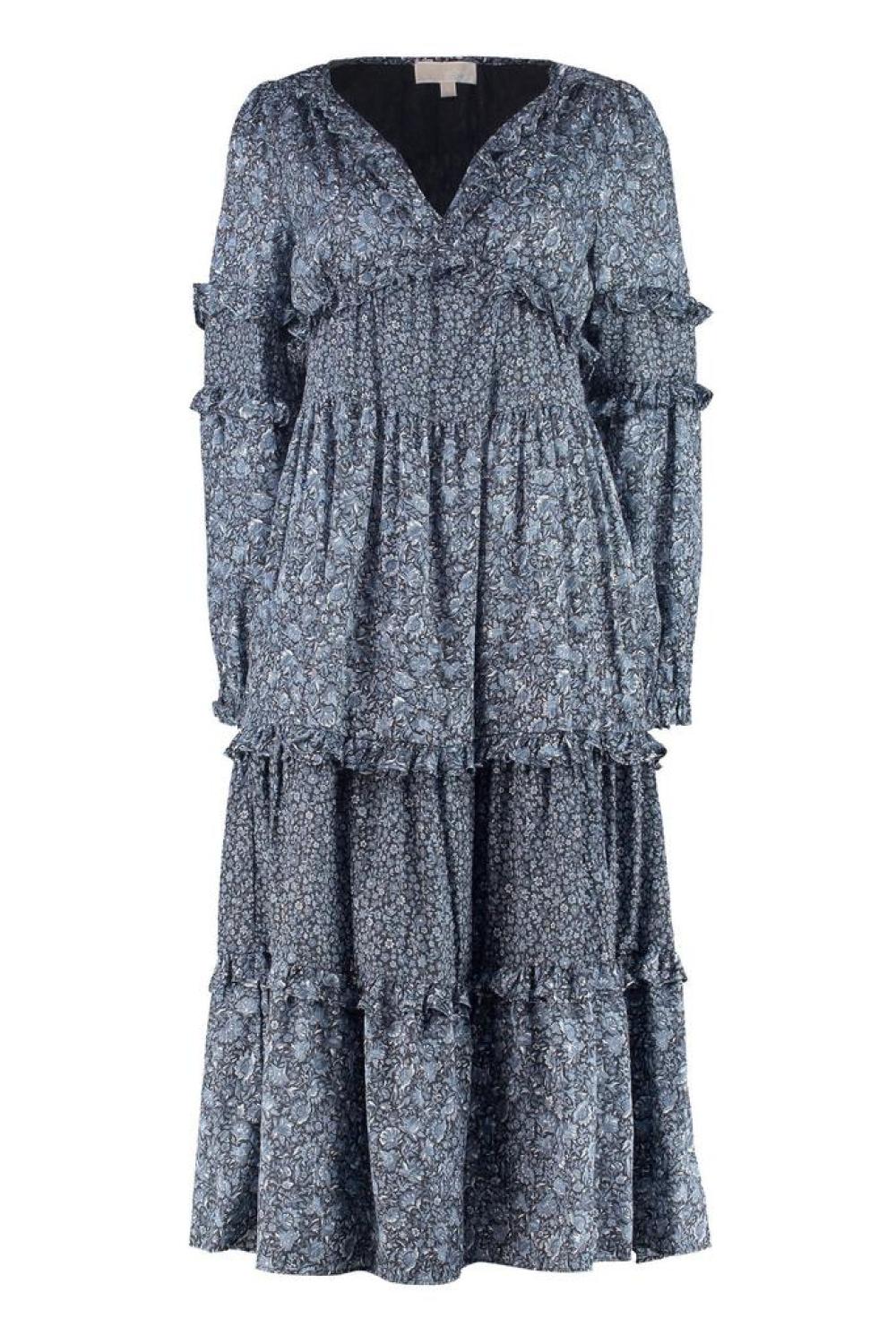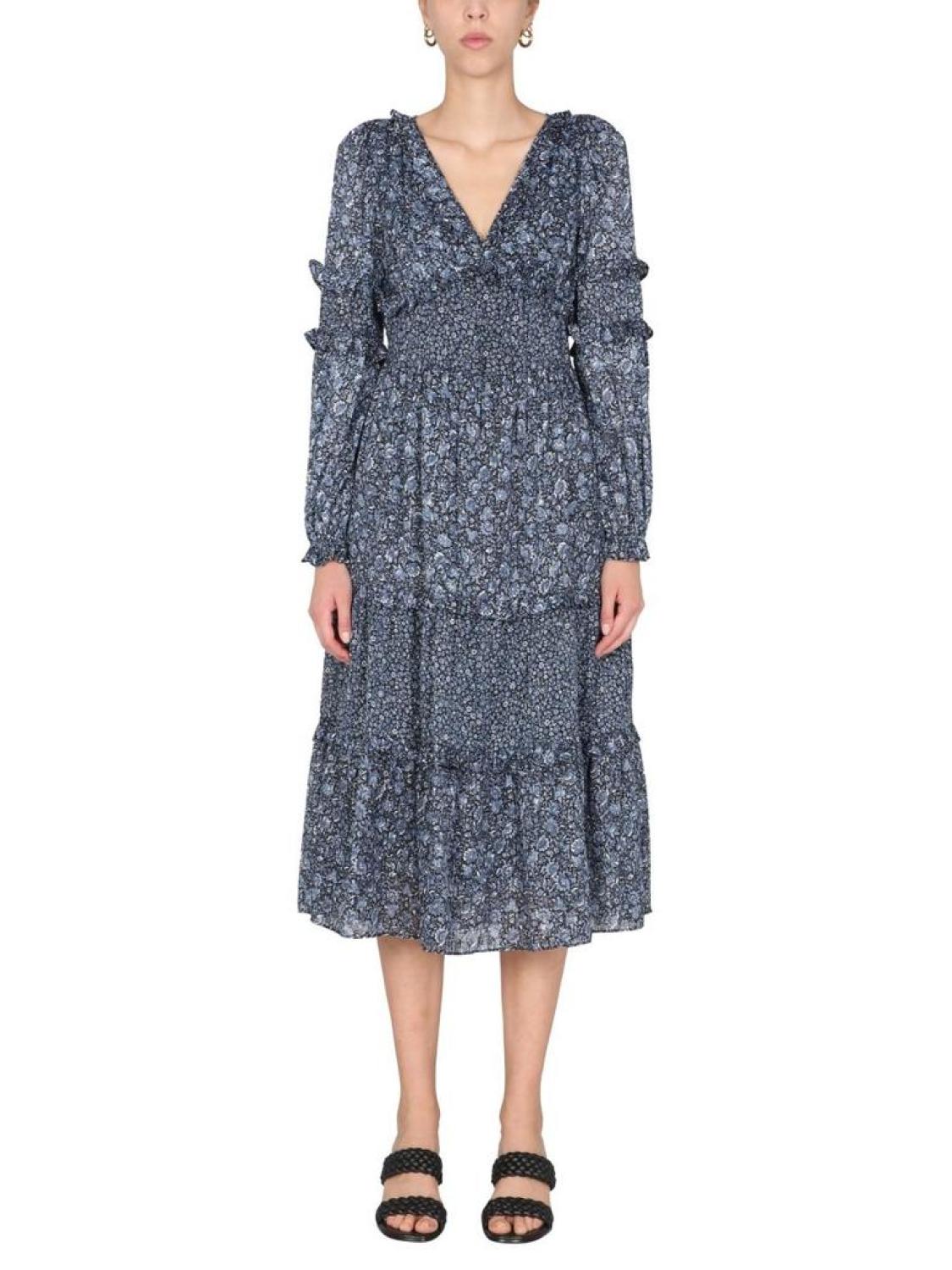 Michael Michael Kors Floral Printed V-Neck Midi Dress