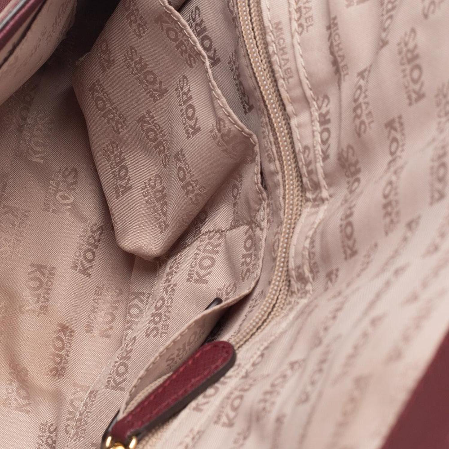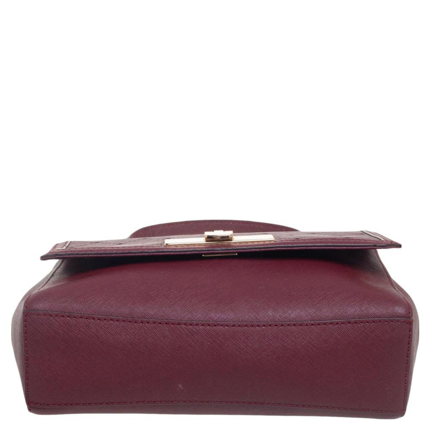 This stylish bag is perfect for day and night ensembles. MICHAEL Michael Kors has crafted this bag from perforated leather in a red hue. It has a logo detailed flip lock on the front flap a top handle and a spacious interior.