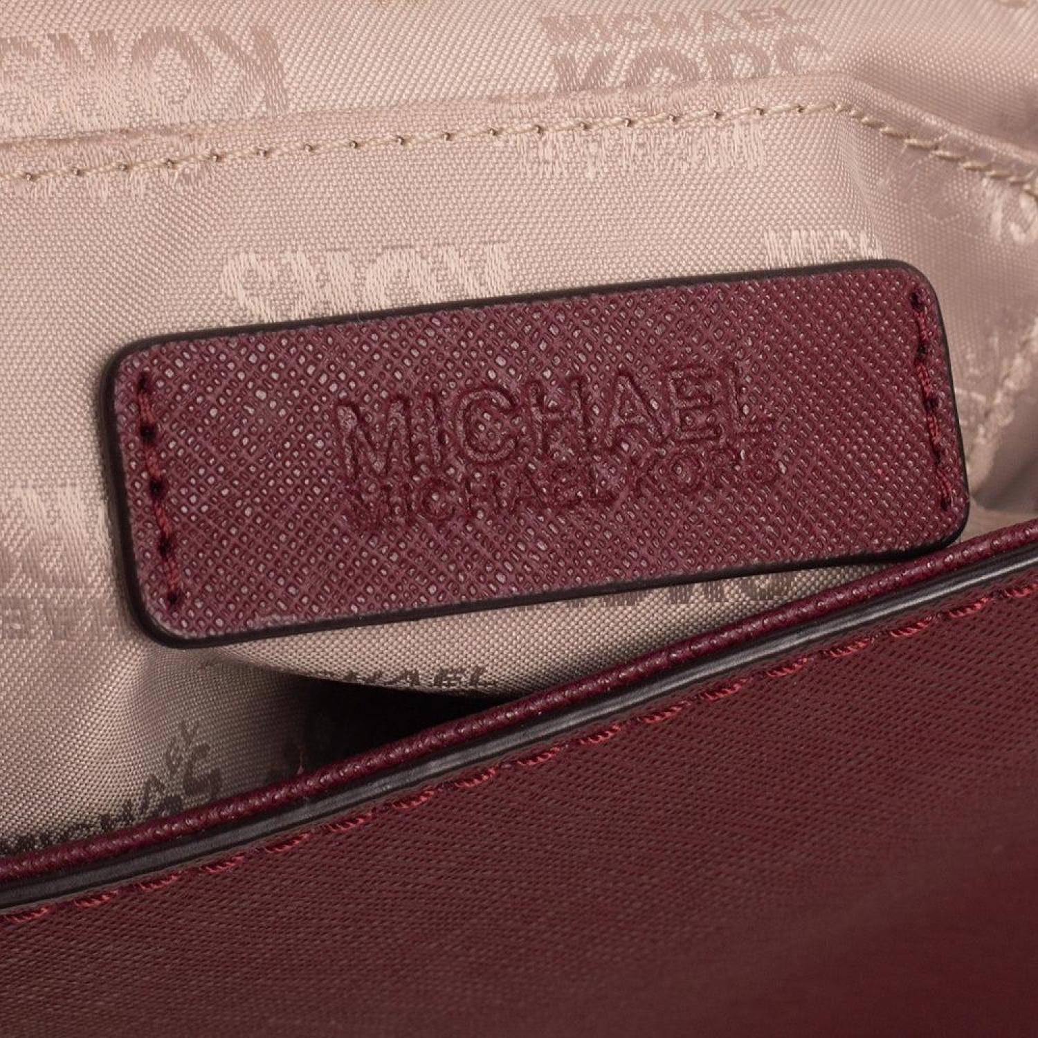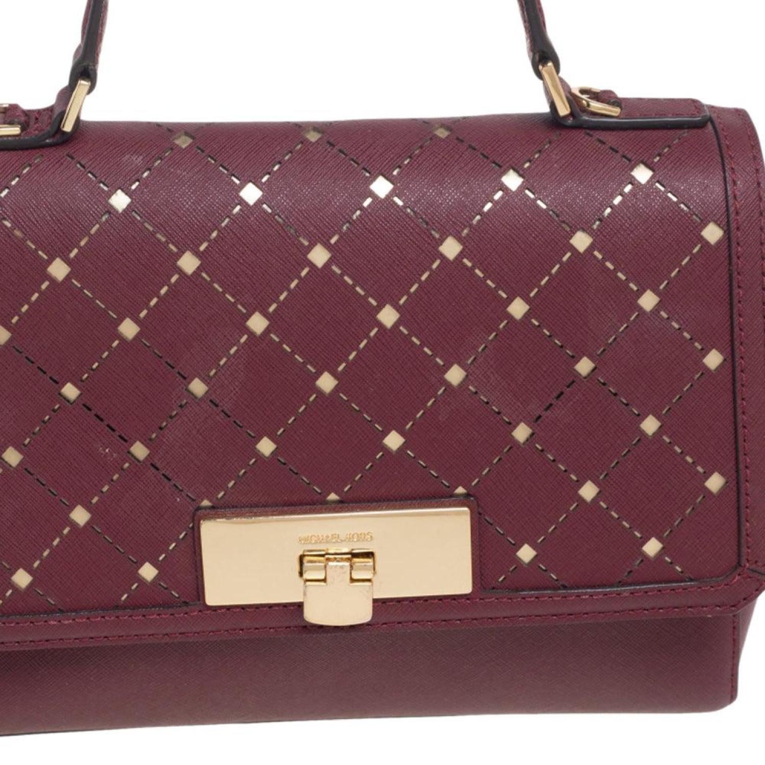 • This stylish bag is perfect for day and night ensembles. MICHAEL Michael Kors has crafted this bag from perforated leather in a red hue. It has a logo detailed flip lock on the front flap a top handle and a spacious interior.