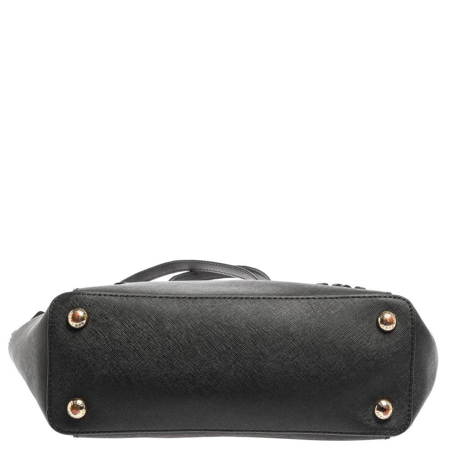 • This Michael Kors tote is beautiful in so many ways. From its design to its structure the leather bag exudes charm and high fashion. It flaunts two shoulder handles for you to swing a top zip fastening and two slip pockets on the exterior. The spacious nylon interior will hold all your essentials.