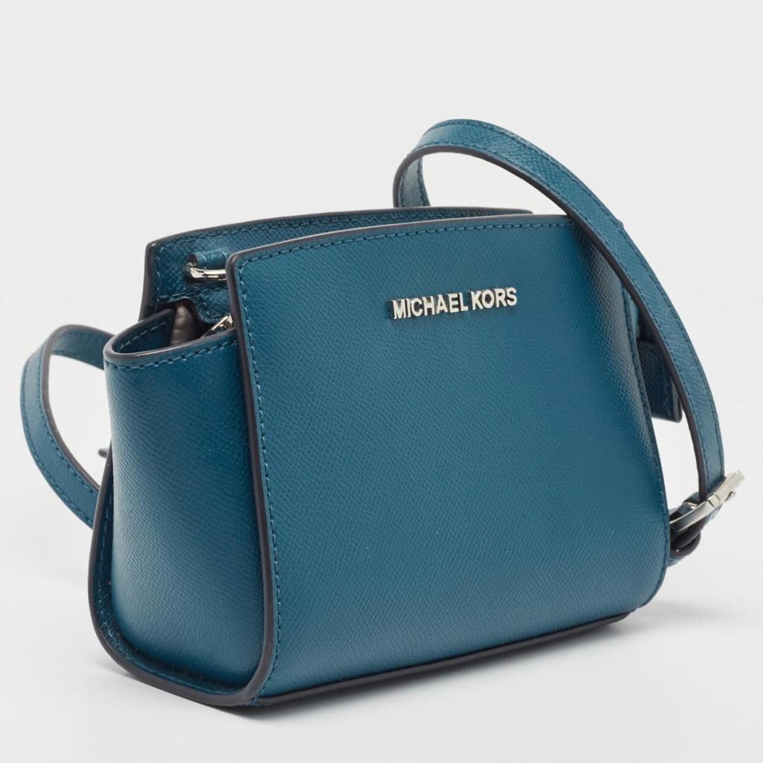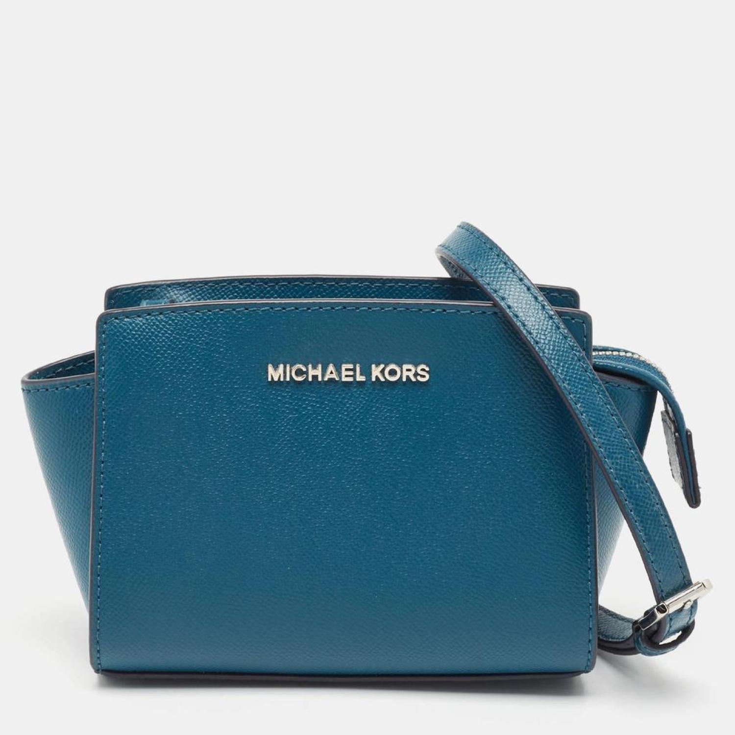 • Take your style to a whole new level with this Selma bag from MICHAEL Michael Kors that is specially made for the modern woman. It comes crafted from leather in a blue shade and features a slender strap. It opens to a well sized fabric lined interior that can easily carry all your daily essentials. The creation is complete with the brand logo on the front.
