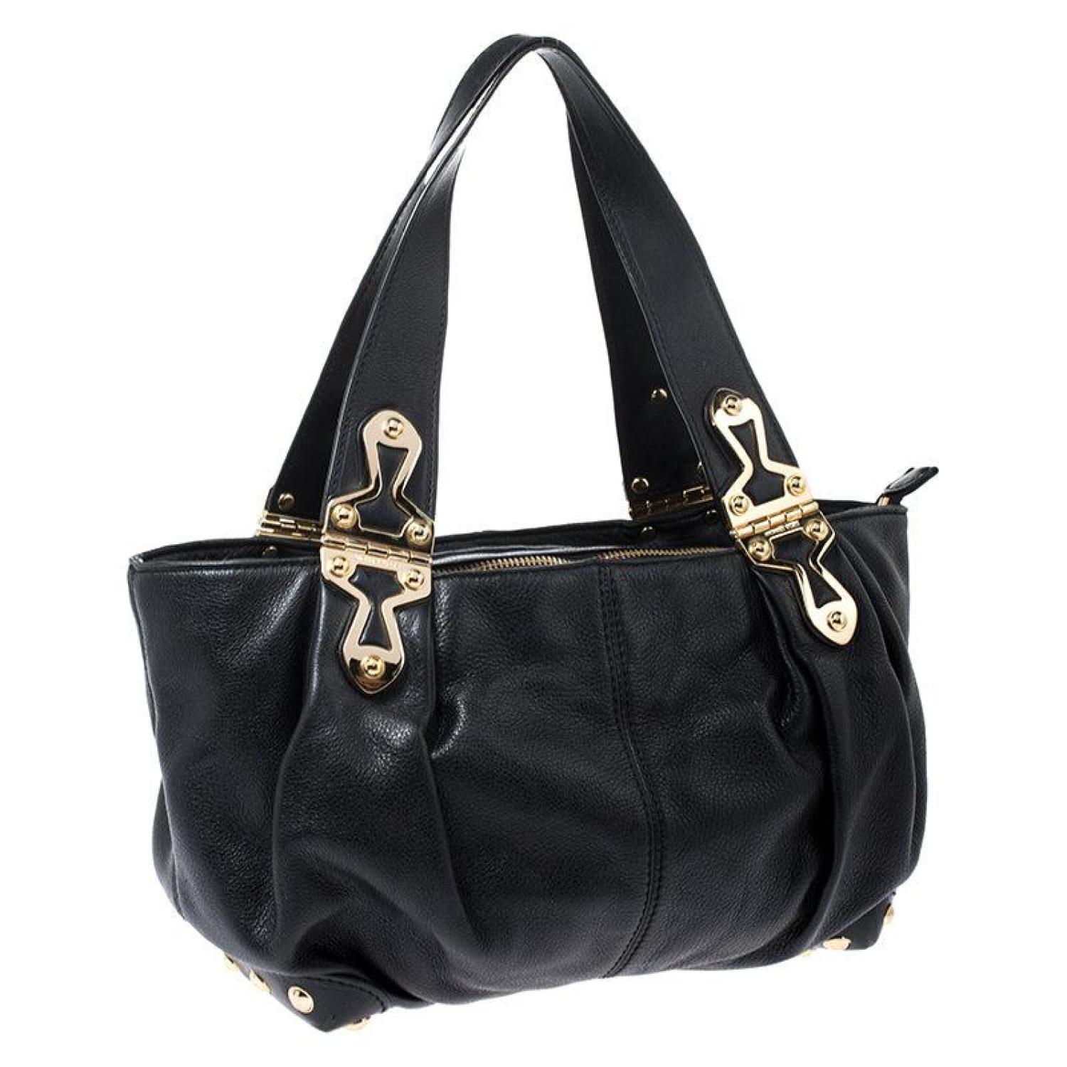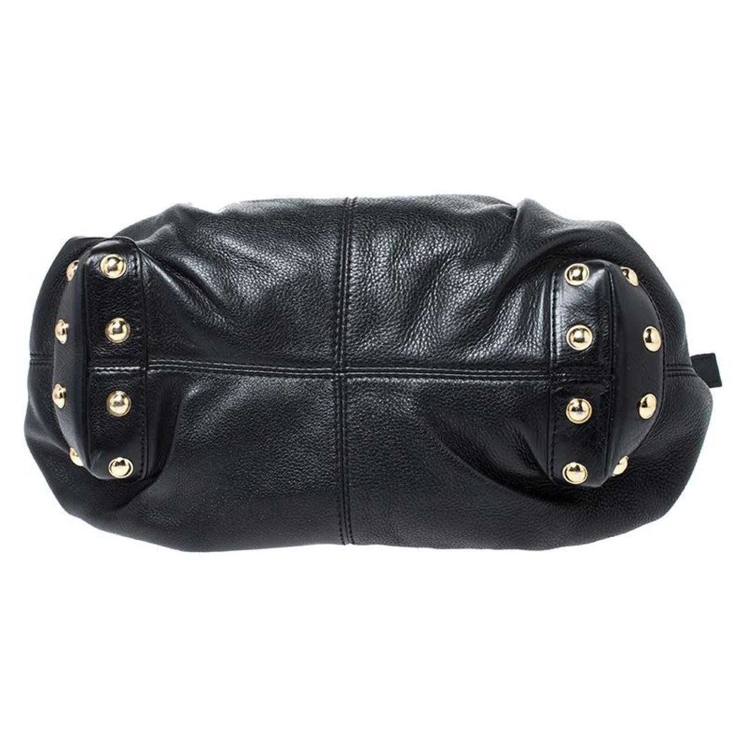 Designed with love this hobo by Michael Michael Kors is crafted from black leather. It comes with a nylon lined interior that houses one zip and one slip pocket. The hobo features gold tone studs at the bottom and two handles.