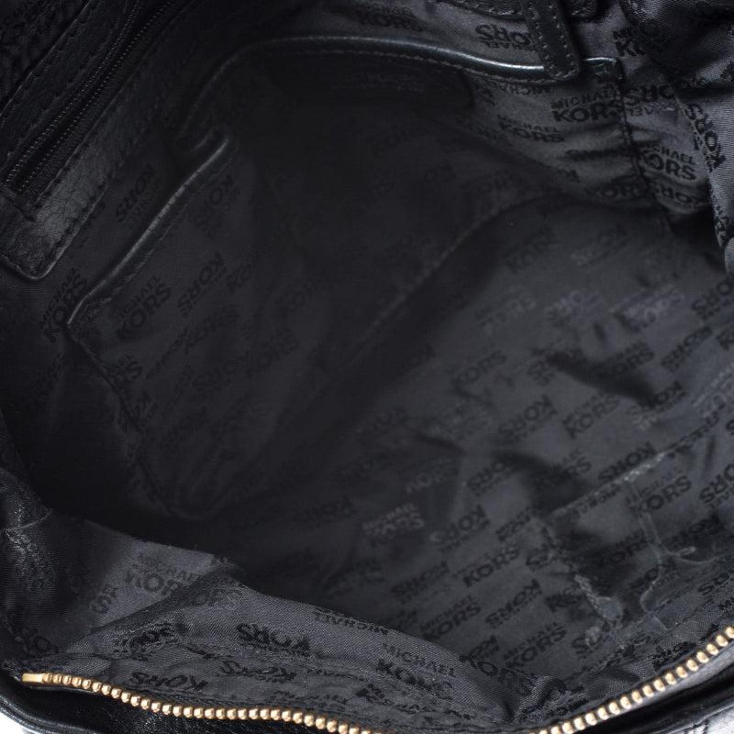 • Designed with love this hobo by Michael Michael Kors is crafted from black leather. It comes with a nylon lined interior that houses one zip and one slip pocket. The hobo features gold tone studs at the bottom and two handles.