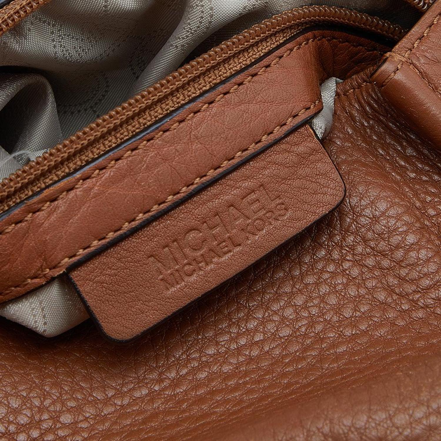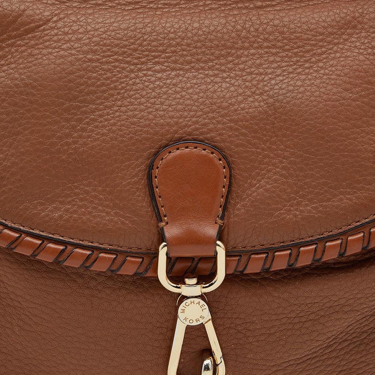 The braided flap design of this MICHAEL Michael Kors bag reflects the brands flair for creating elegant noteworthy styles. Crafted from textured leather it has a single handle shoulder strap gold tone hardware and brand detailed lock on the front. The fabric lined interior has enough room to accommodate all your essentials securely.