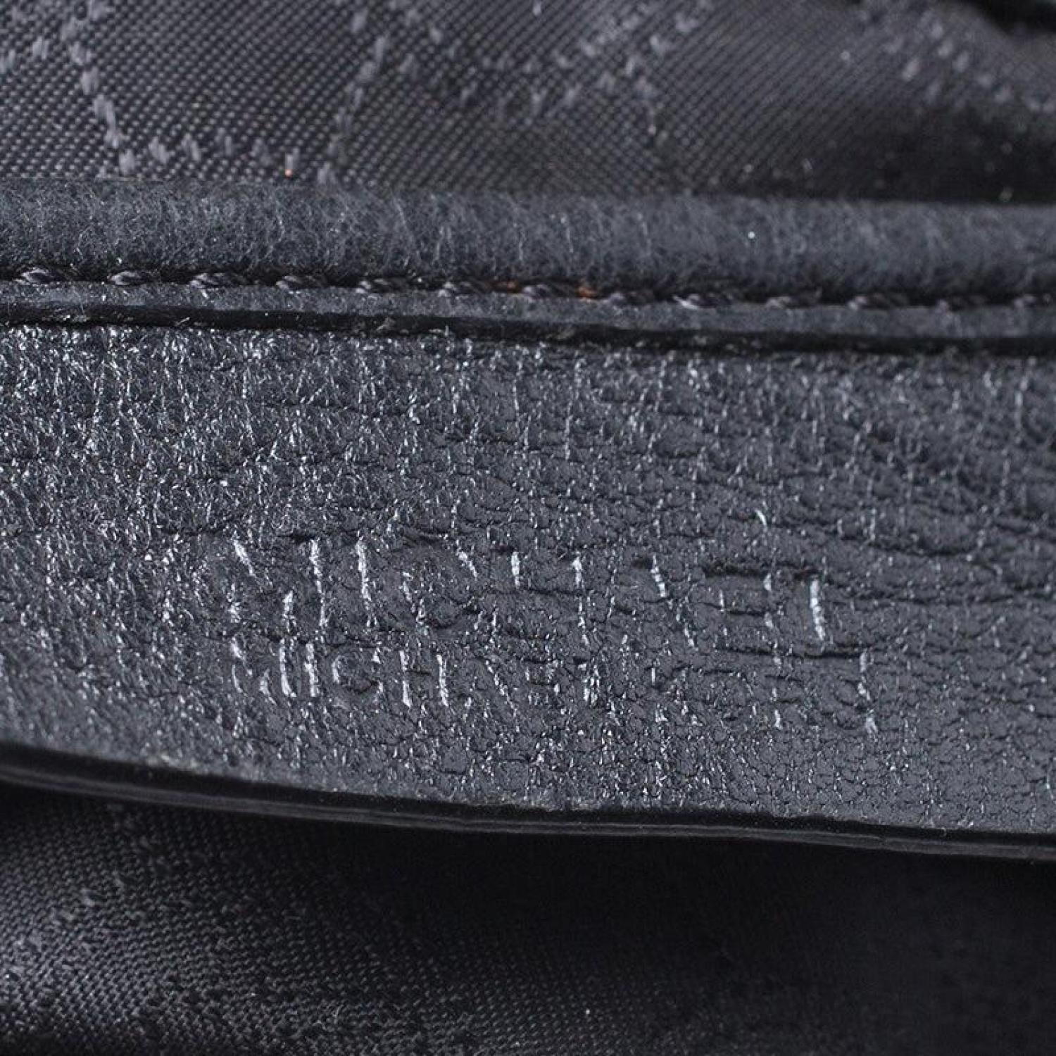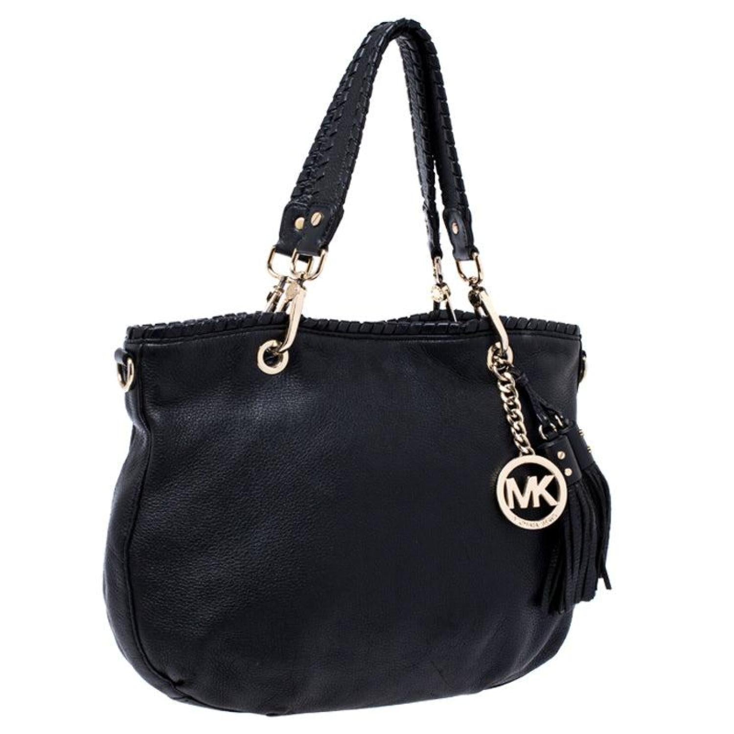 • This satchel from the house of MICHAEL Michael Kors is something you would go to season after season. It has been crafted from a black leather body and features cutout trims on the top. It comes with twin woven top handles along with logo charm and tassels to the front. This elegant creation opens to a spacious interior that can easily hold your day to evening essentials.