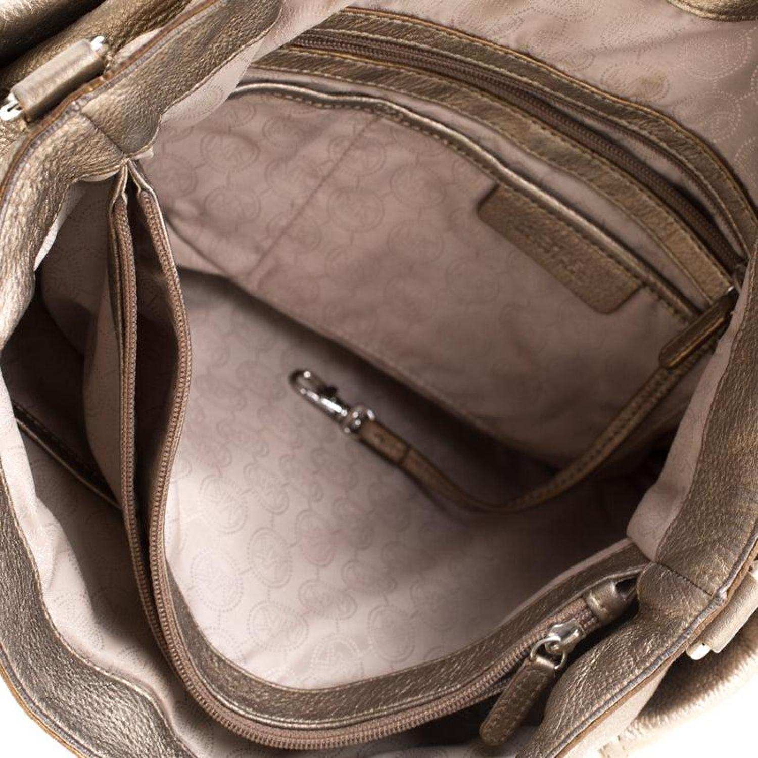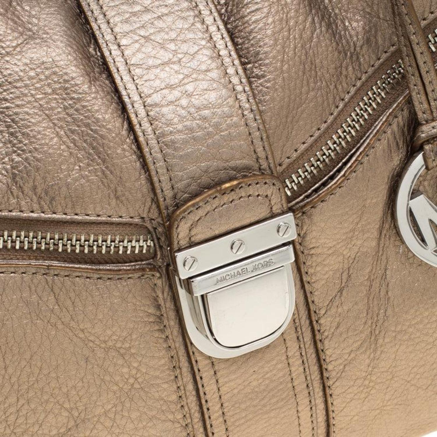 • Swap that regular everyday bag with this creation from the house of MICHAEL Michael Kors. It features a metallic gold body with a pocket on each side and two zip pockets on the front. It has a spacious fabric lined interior that can hold all your daily essentials with great ease.