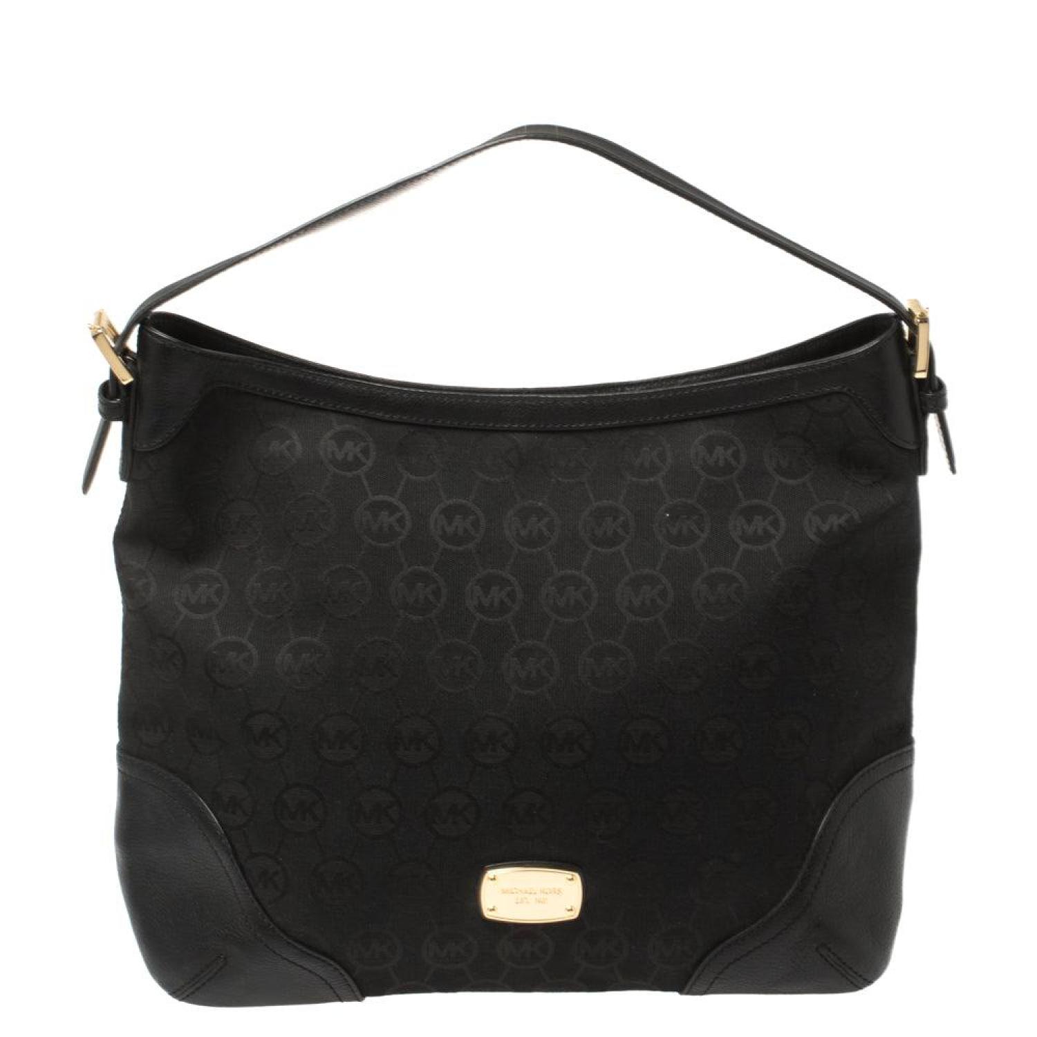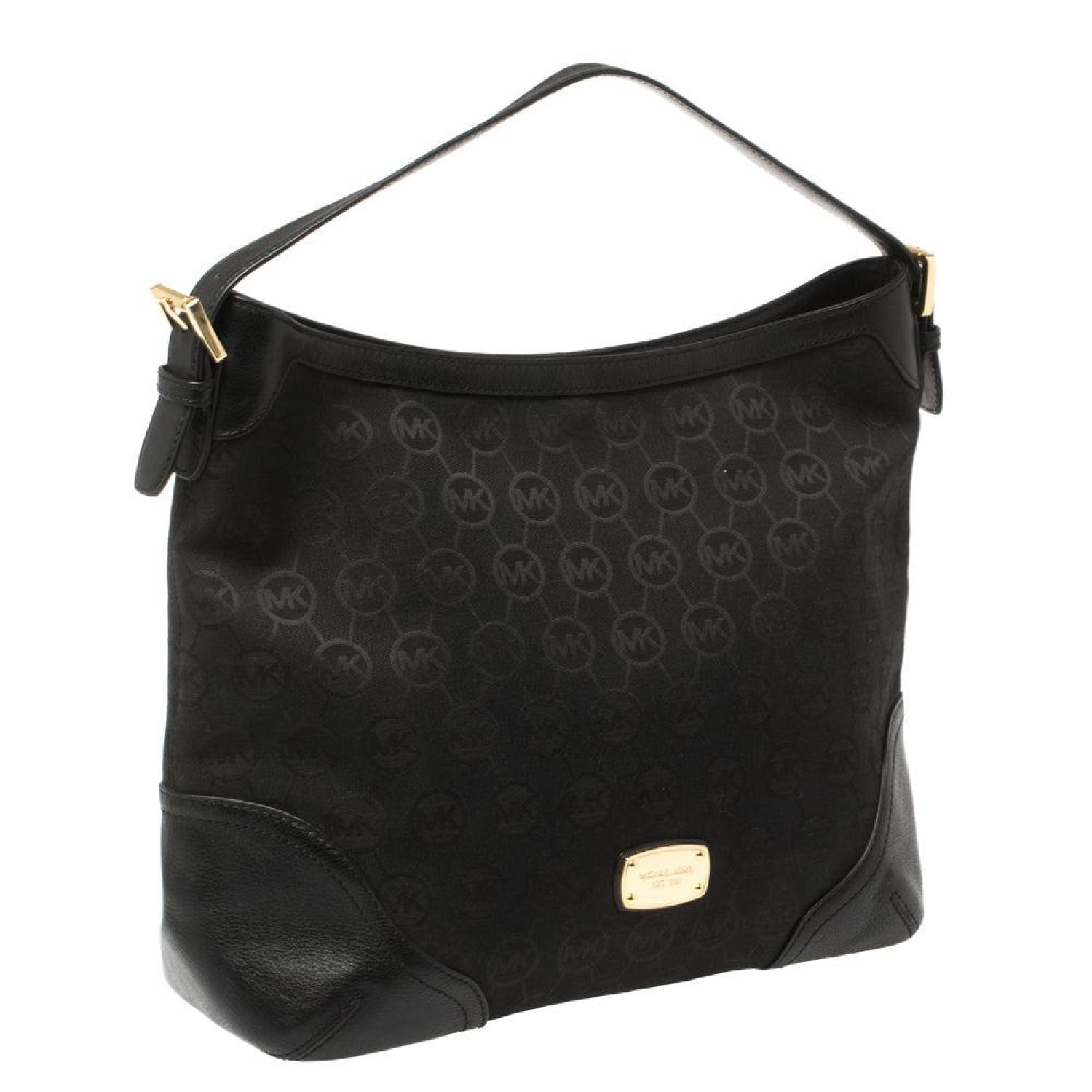 You will always find the time and occasion to pair this stunning MICHAEL Michael Kors piece with a daytime look. Crafted in signature canvas and leather trims this hobo features a gold tone zipper closure at the top along with a top handle and a spacious interior to add to the utility of this piece. The bag is complete with a logo plaque on the front.