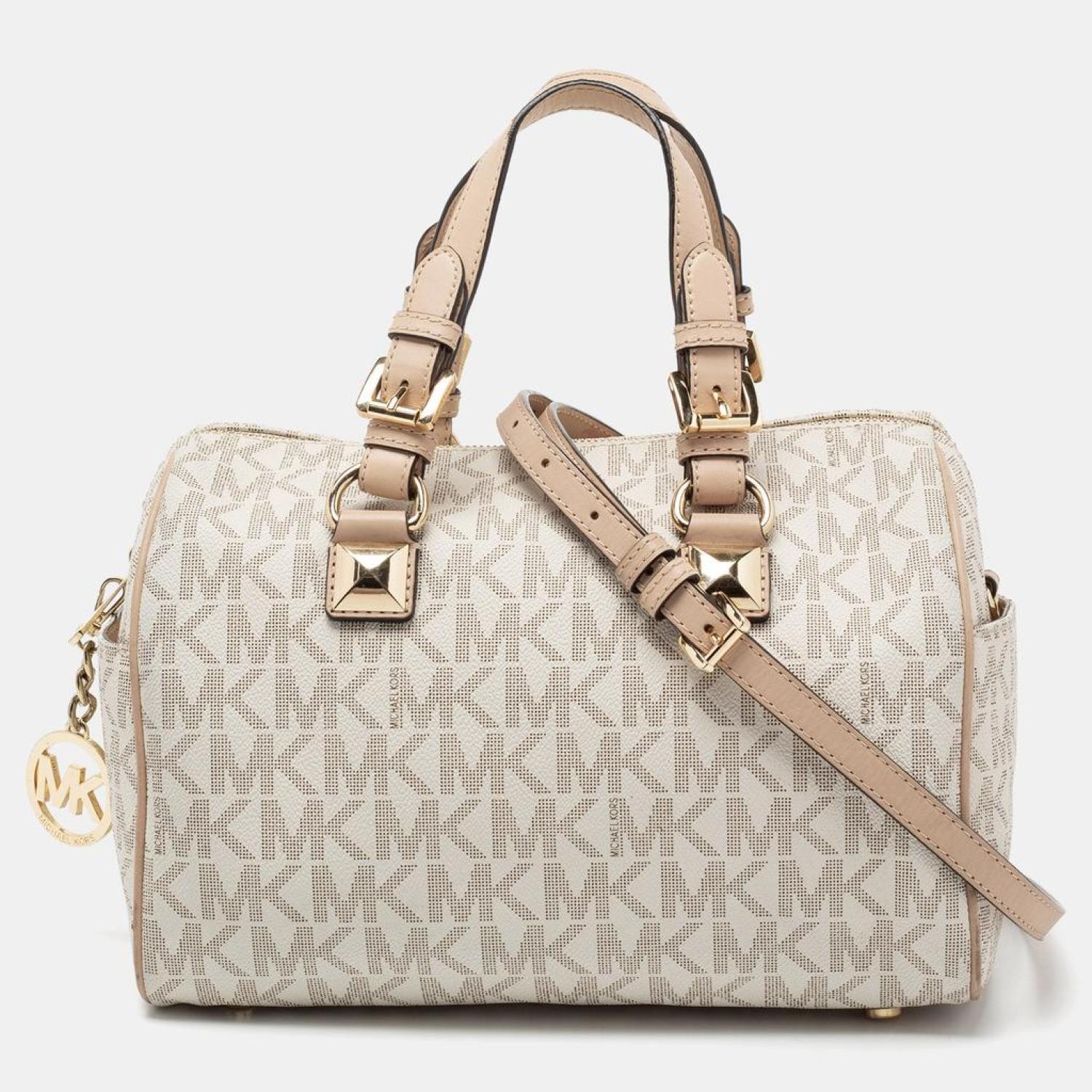 Michael Michael Kors Signature Coated Canvas And Leather Grayson Boston Bag