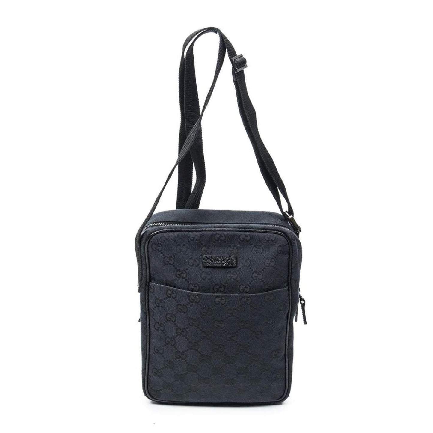 Gucci Shoulder Bag in Black Monogrammed Canvas and Silver hardware. Dimensions - 18*23*8cm. Serial number - 122759 1669. Inclusions - None. Pre-Owned