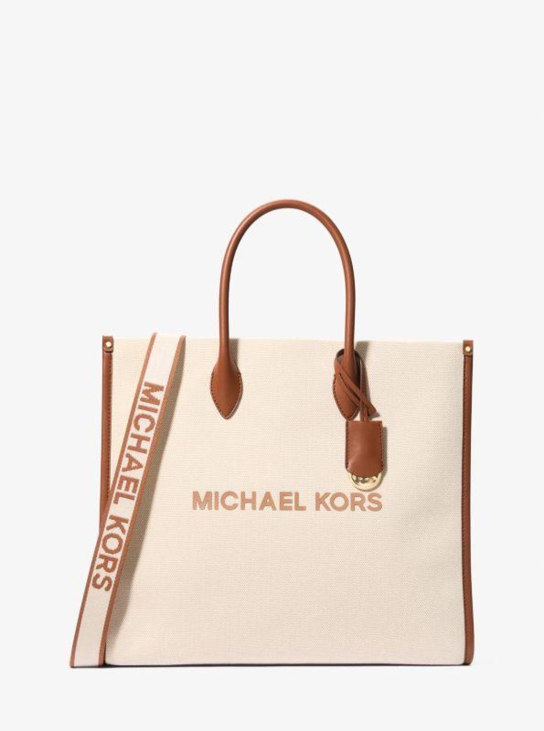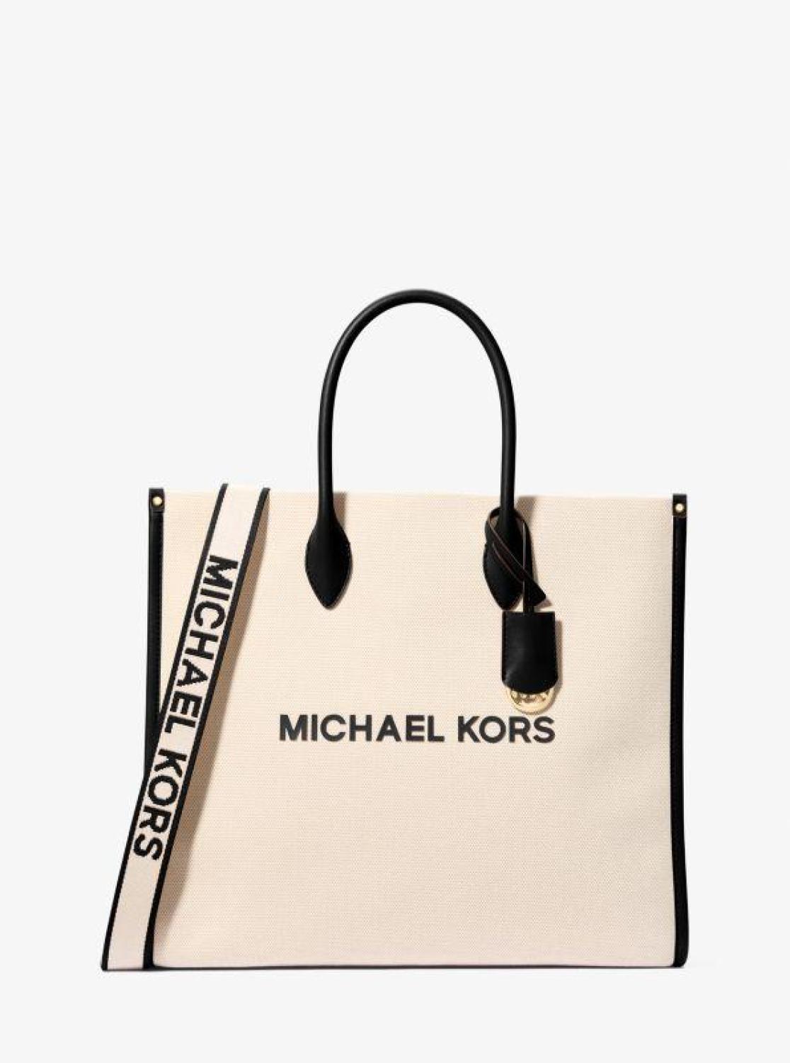• Crafted from lightweight cotton-blend canvas, our structured Mirella tote is defined by contrast brand lettering and a sporty, adjustable logo-tape strap. Thanks to its neutral hues and roomy interior, it makes a great everyday bag.