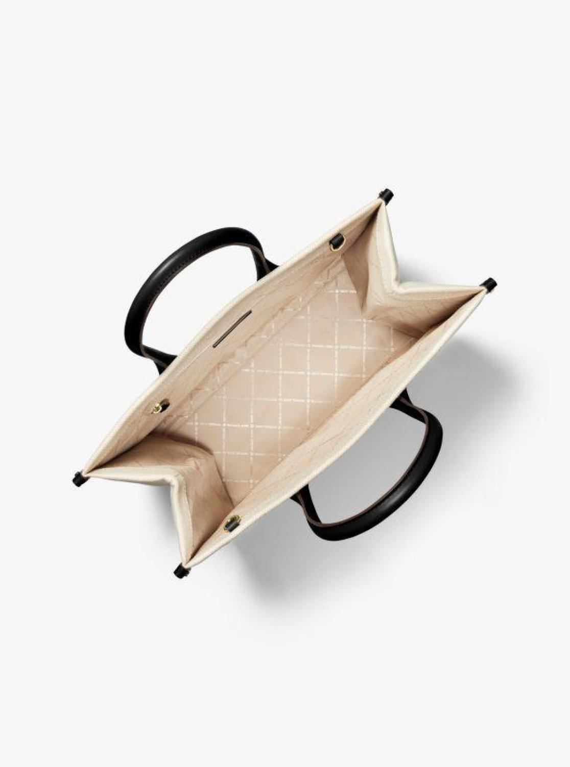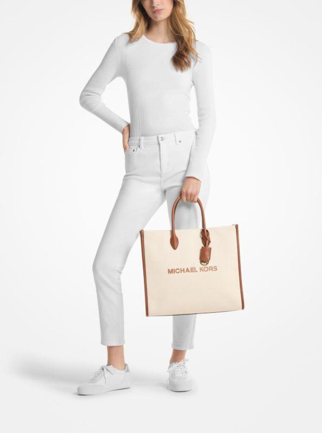 Crafted from lightweight cotton-blend canvas, our structured Mirella tote is defined by contrast brand lettering and a sporty, adjustable logo-tape strap. Thanks to its neutral hues and roomy interior, it makes a great everyday bag.