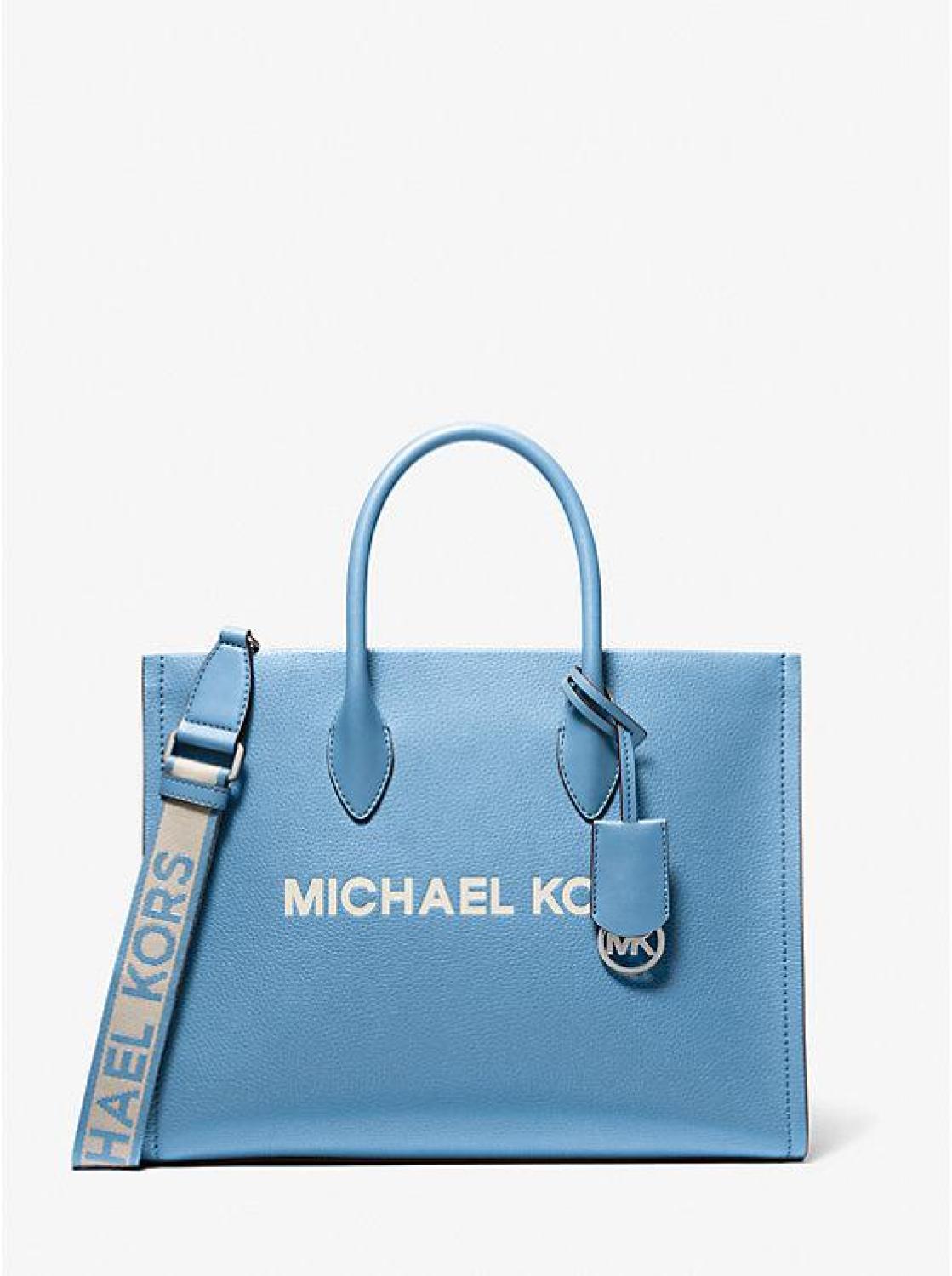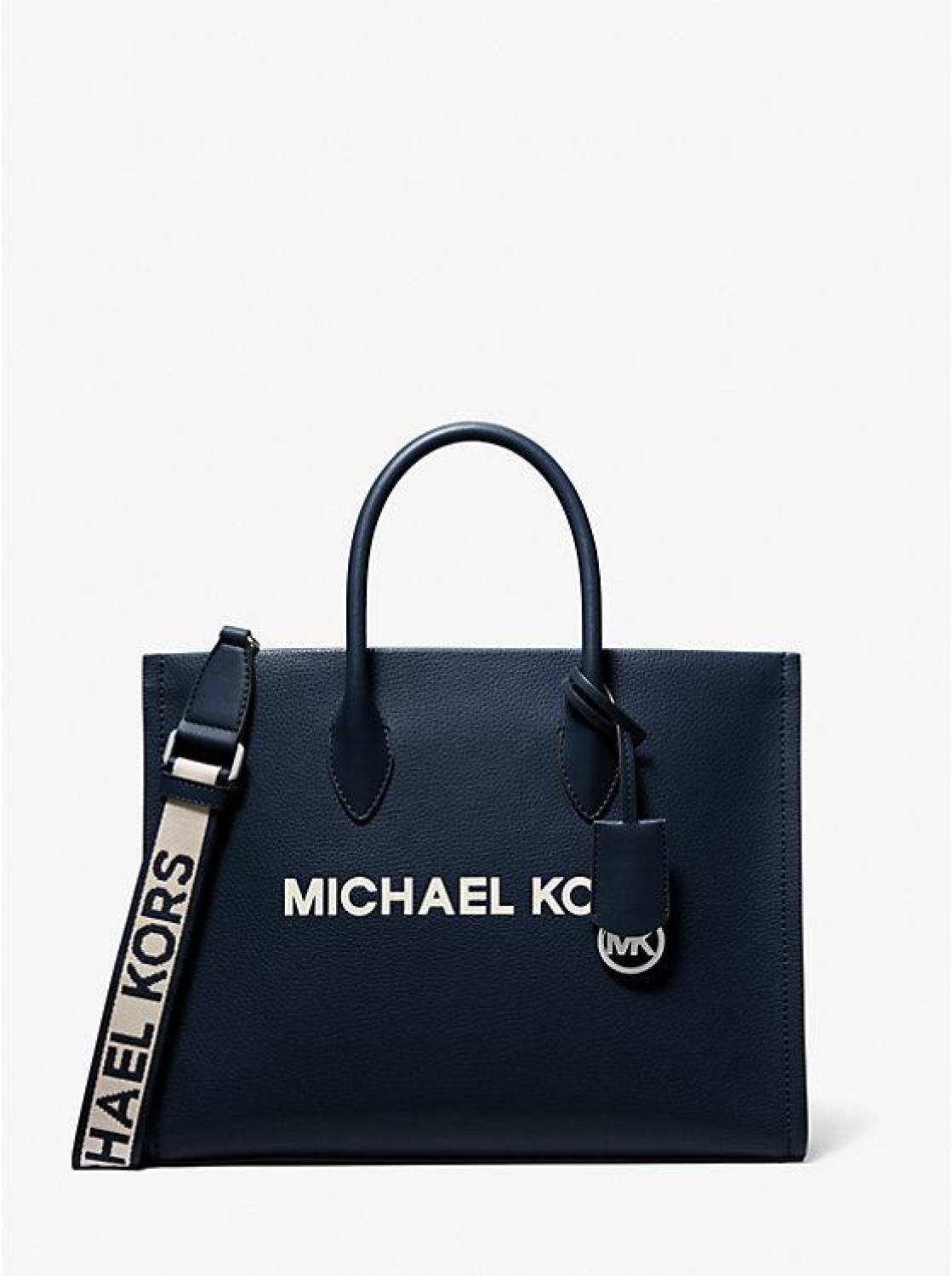 Crafted from durable pebbled leather, the Mirella tote is defined by our iconic brand lettering and a logo-tape shoulder strap. With smooth accents and a roomy interior, this bag will be your new daytime go-to. Wear it with denim and a classic white shirt.