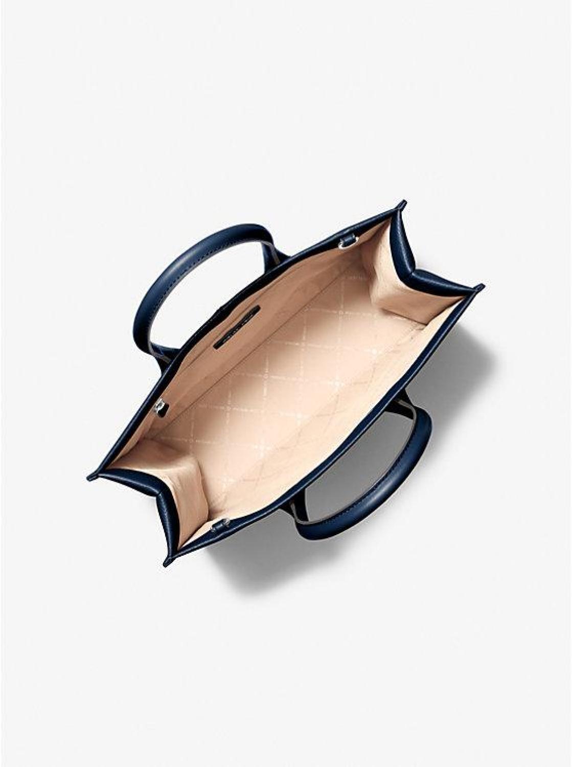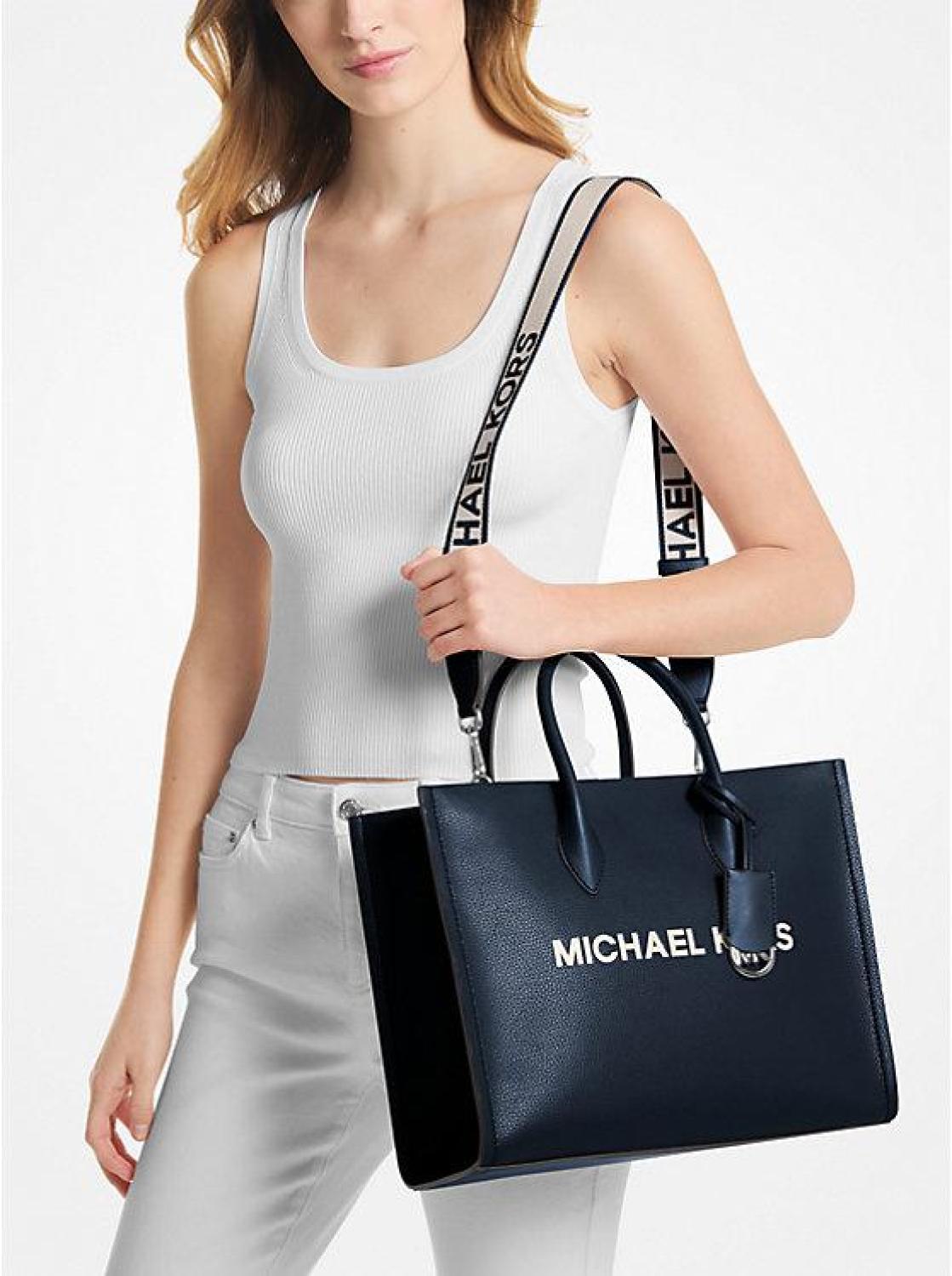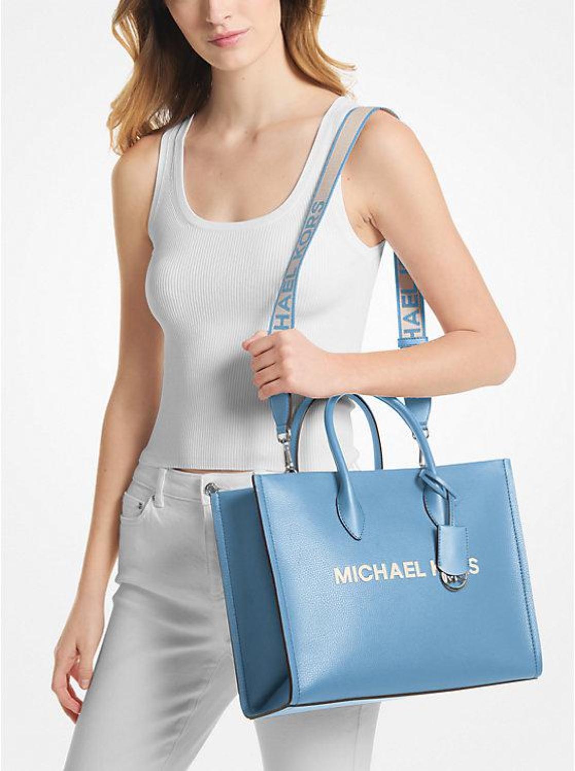 • Crafted from durable pebbled leather, the Mirella tote is defined by our iconic brand lettering and a logo-tape shoulder strap. With smooth accents and a roomy interior, this bag will be your new daytime go-to. Wear it with denim and a classic white shirt.