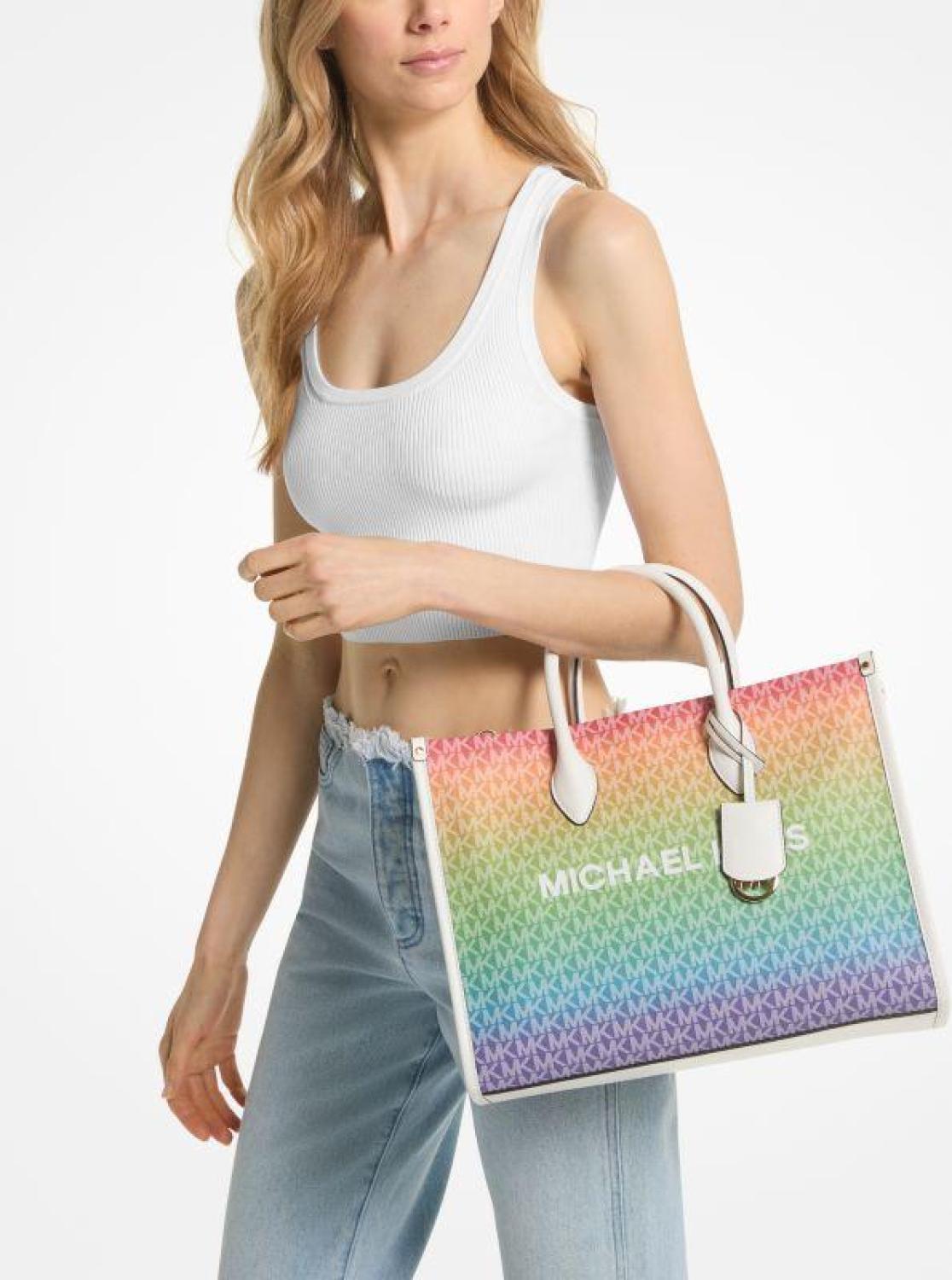 Crafted from durable coated canvas with our allover initials, the Mirella tote is defined by a vibrant rainbow finish. With smooth accents and a roomy interior, this bag will be your new daytime go-to. Wear it with denim and a classic white shirt. • Tote bag • Logo-print canvas • 90% coated canvas/10% polyester • Trim 1: 60% polyurethane/20% cotton/20% polyester • Gold-tone hardware • 13.75”W X 10.75”H X 4.75”D • Handle drop: 4.5” • Adjustable strap: 15”-25” • Interior details: back zip pocket, front slip pocket • Lining: 100% polyester • Zip fastening • Imported • Tote bag • Logo-print canvas • 90% coated canvas/10% polyester • Trim 1: 60% polyurethane/20% cotton/20% polyester • Gold-tone hardware • 13.75”W X 10.75”H X 4.75”D • Handle drop: 4.5” • Adjustable strap: 15”-25” • Interior details: back zip pocket, front slip pocket • Lining: 100% polyester • Zip fastening • Imported
