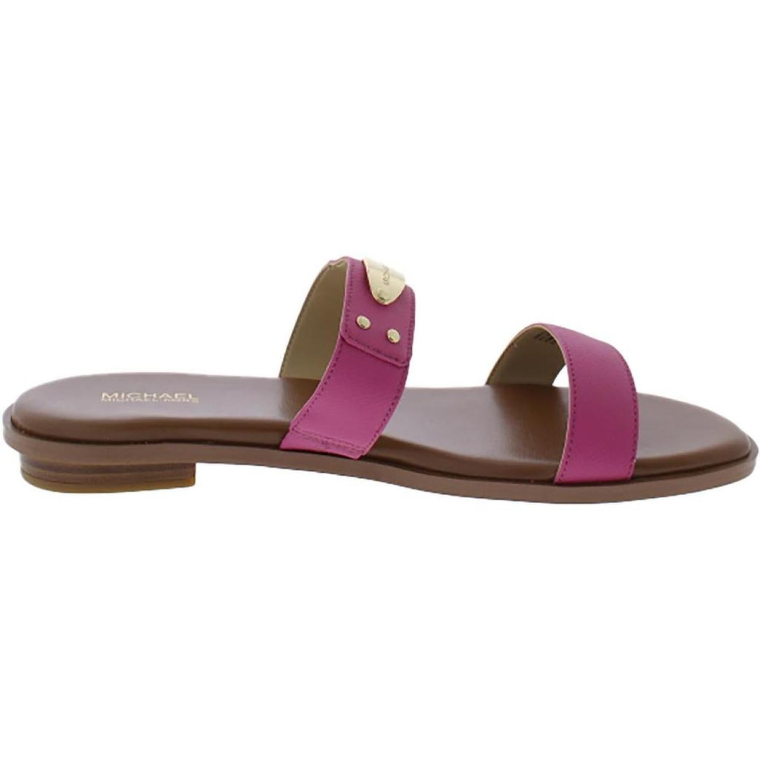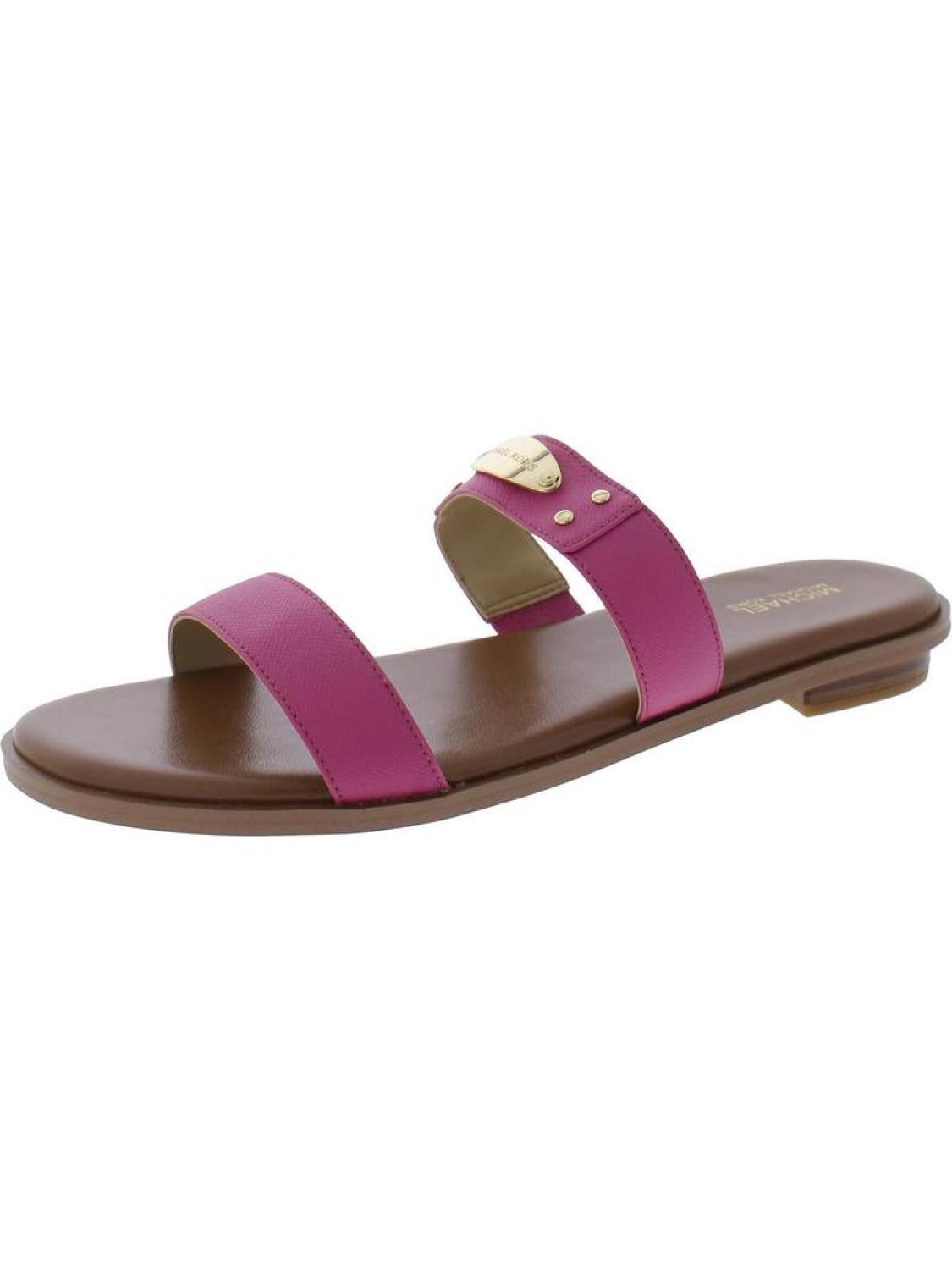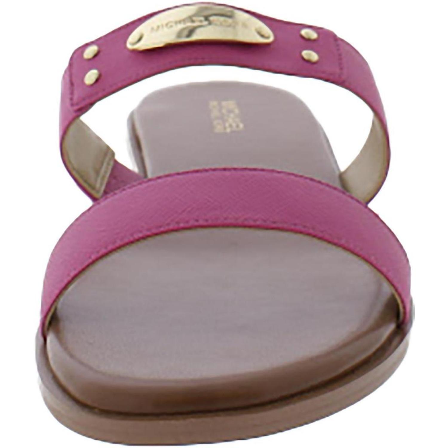 MK Plate Slide Womens Faux Leather Round Toe Slide Sandals