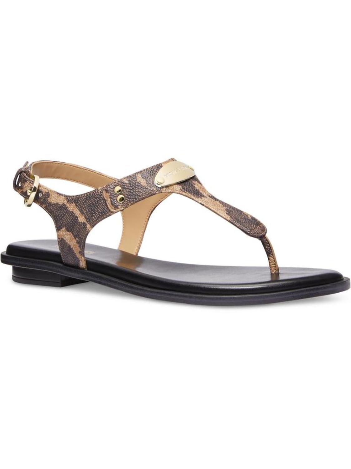 MK Plate Womens Faux Leather Slip On Thong Sandals