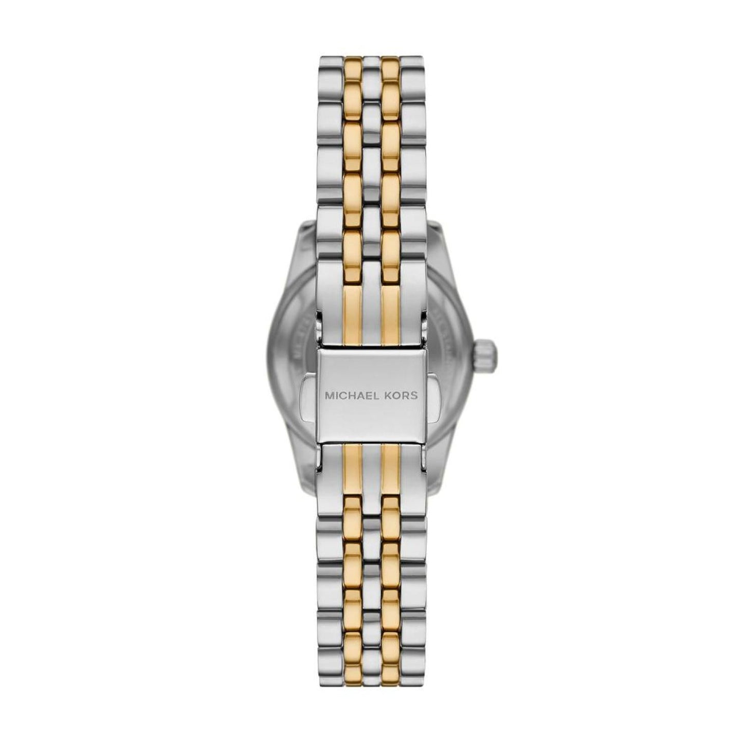 Discover the essence of elegance with the Michael Kors® MK4740 - Petite Lexington Three Hand Watch. This exquisite timepiece marries style and versatility, featuring a chic two-tone bracelet strap with bracelet deployant closure, a round stainless steel case adorned with a spiked bezel for a touch of edge, and precise Quartz/3-hand movement that embodies both sophistication and reliability.