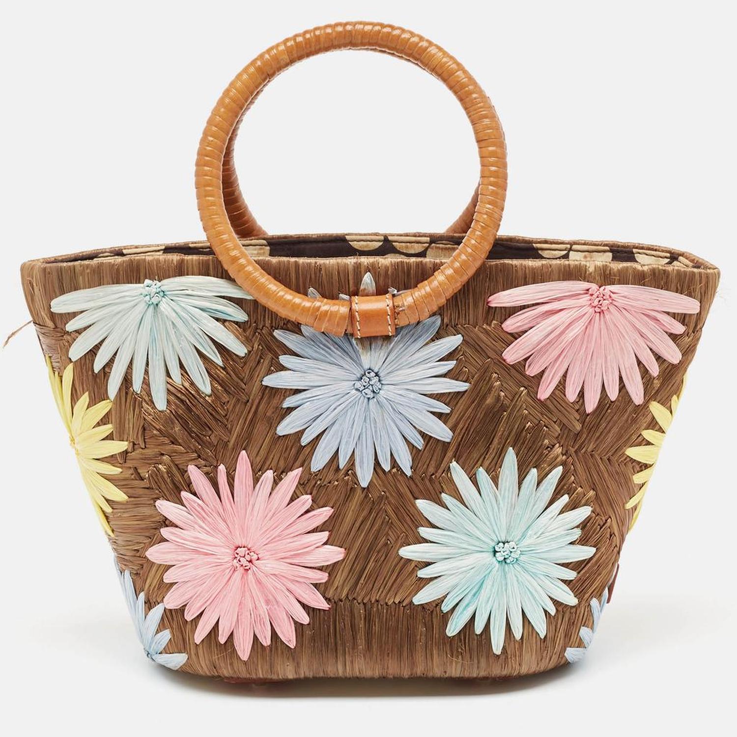 Multicolor Floral Straw Basket Tote
