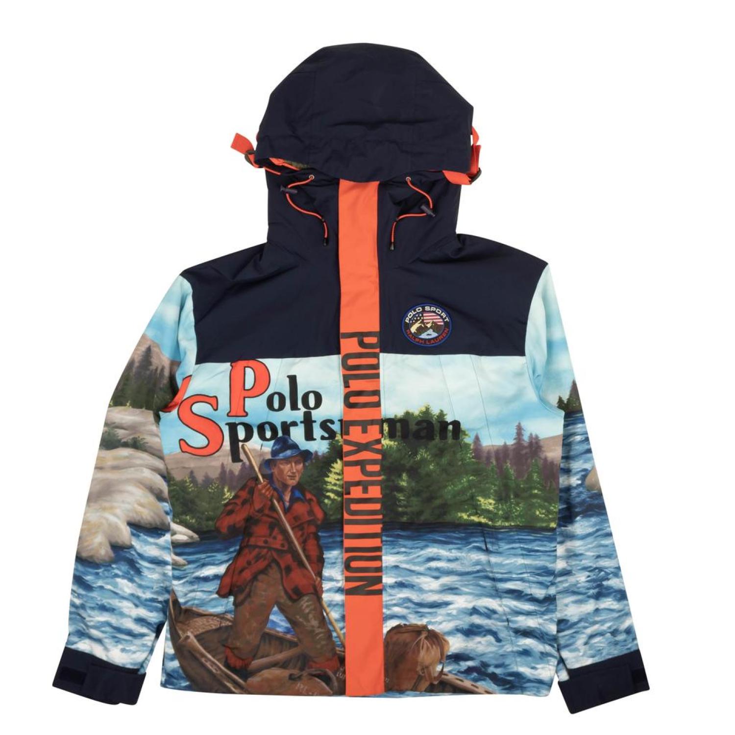 • Men's Jacket Navy Multicolor Graphic Zip Up Drawstring Hood with Faux Fur Lining Mesh Interior 100% Polyester 95-PRL-0002