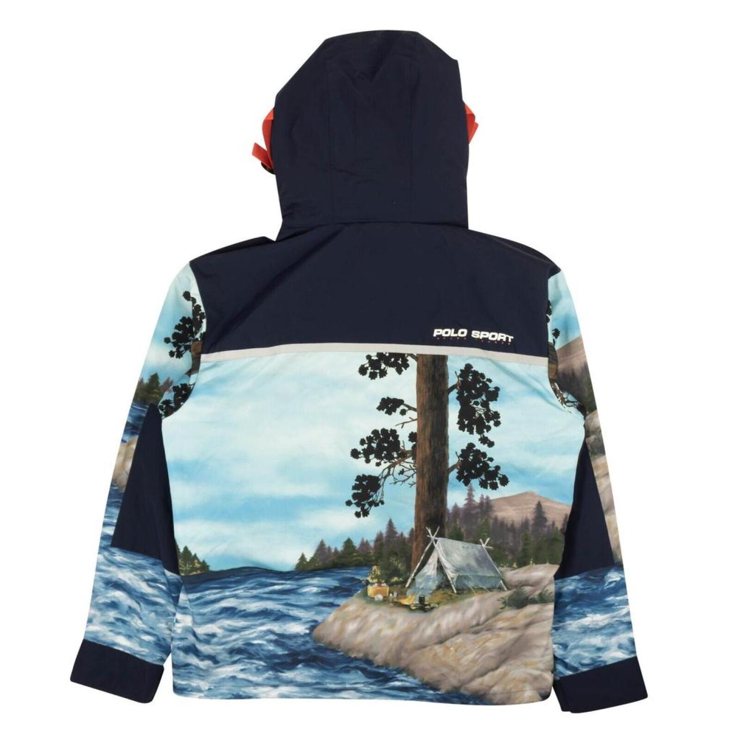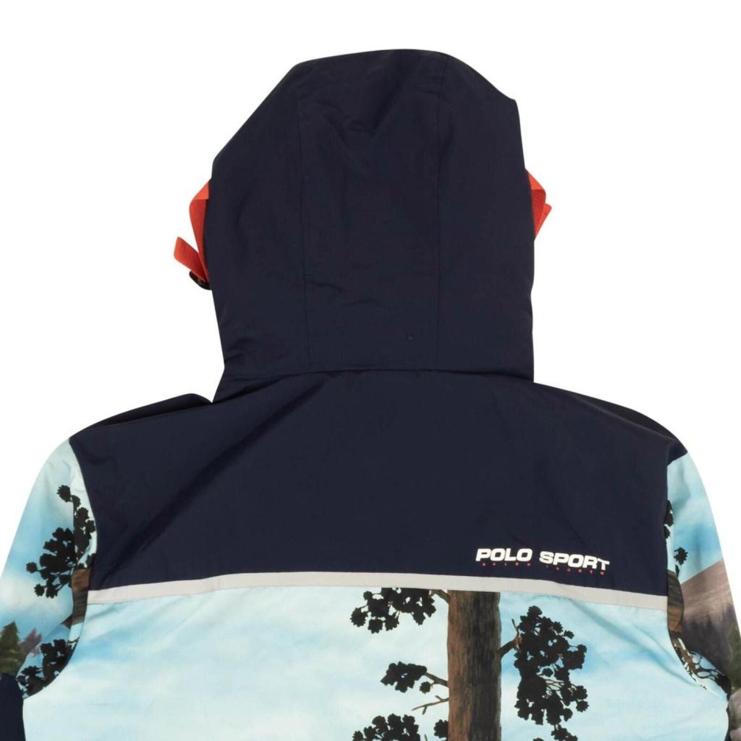 Men's Jacket Navy Multicolor Graphic Zip Up Drawstring Hood with Faux Fur Lining Mesh Interior 100% Polyester 95-PRL-0002