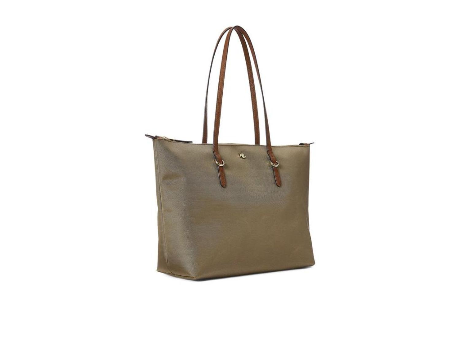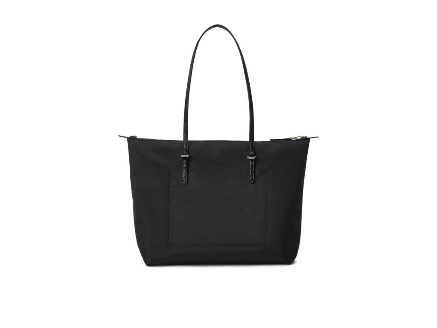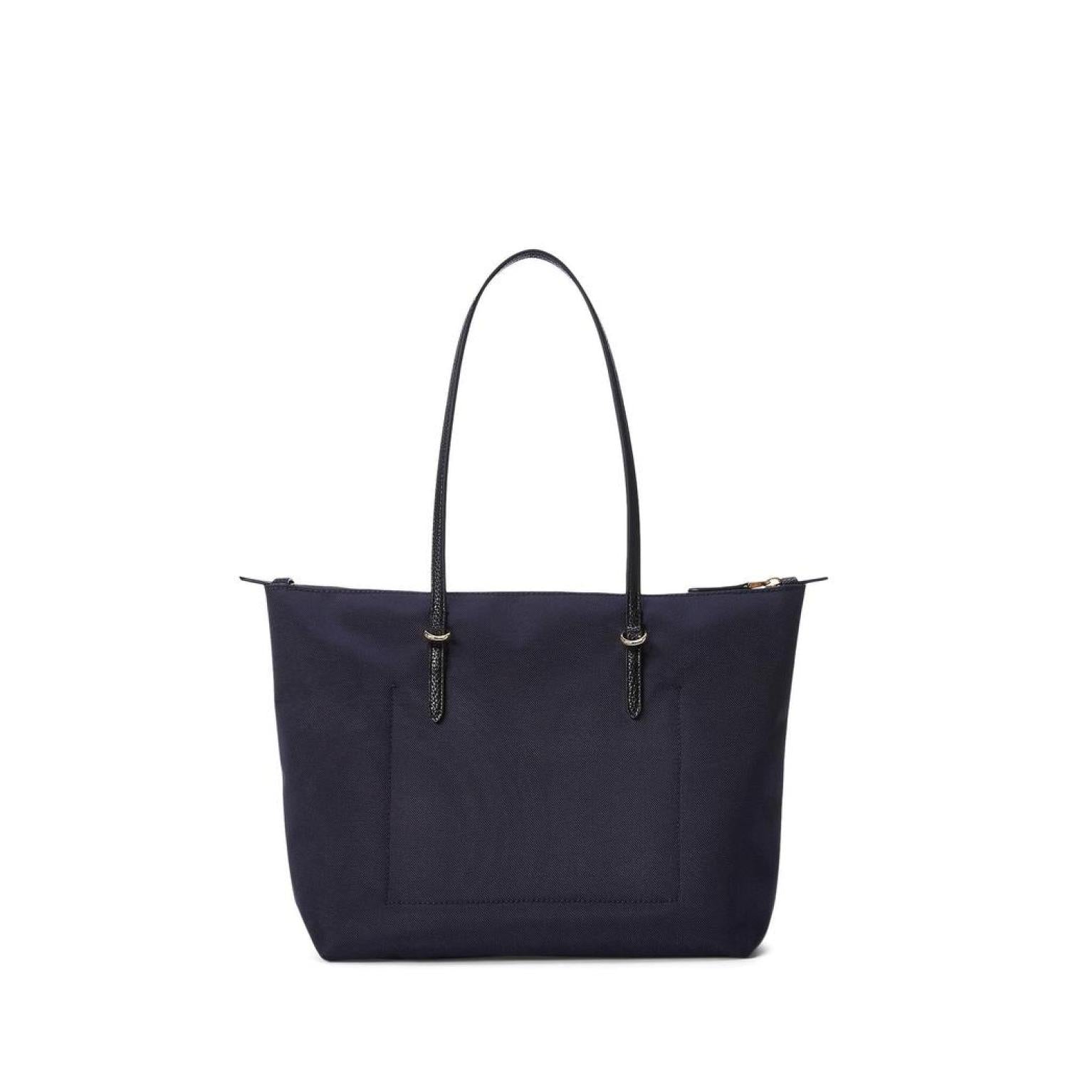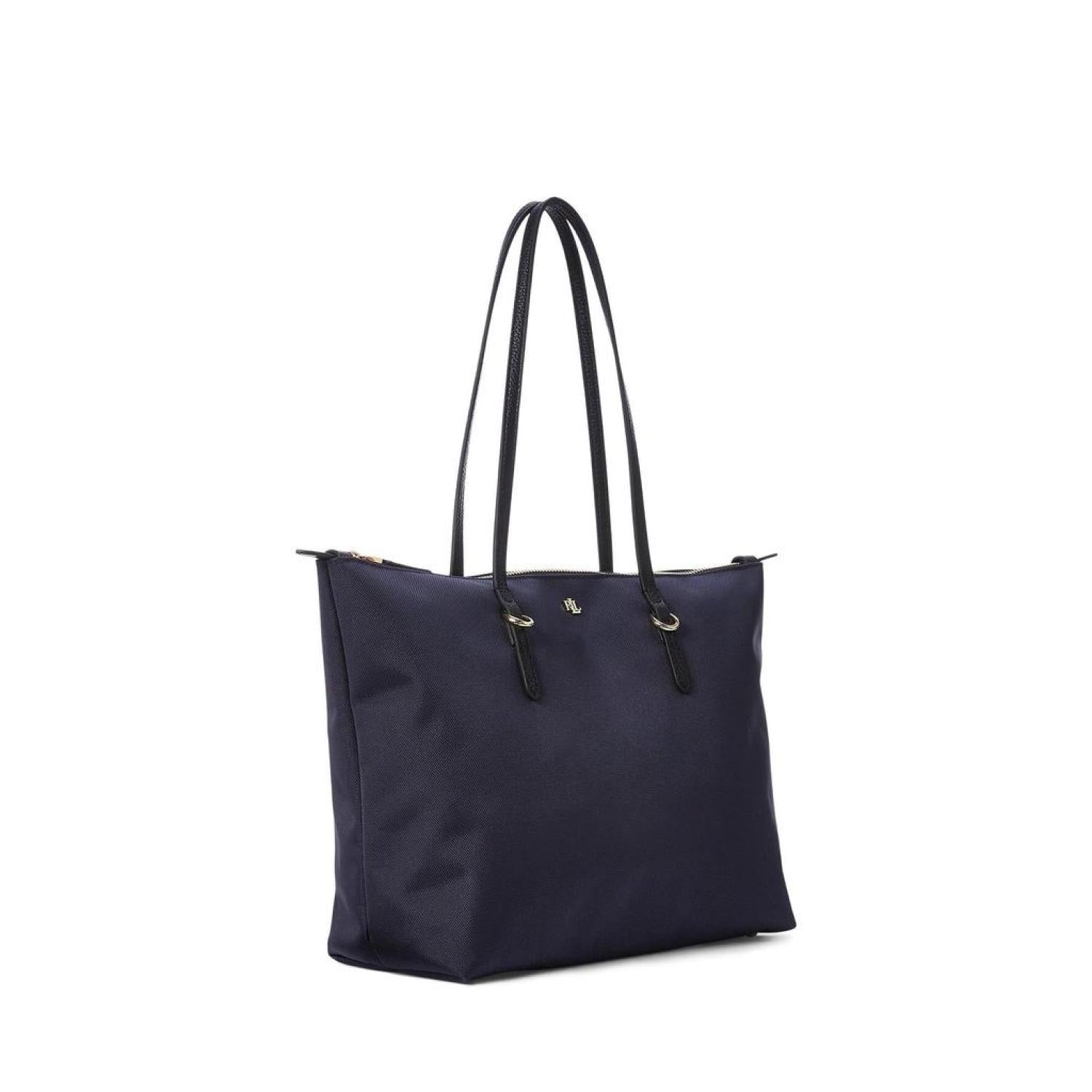 Crafted with durable nylon and luxurious faux-leather straps, the LAUREN Ralph Lauren® Nylon Medium Keaton Tote offers a spacious silhouette for all your essentials. Featuring two compartments, an interior slip pocket, and a top zippered closure for secure storage. Finished with a polished "LRL" metal logo, this versatile tote is the perfect blend of style and functionality.