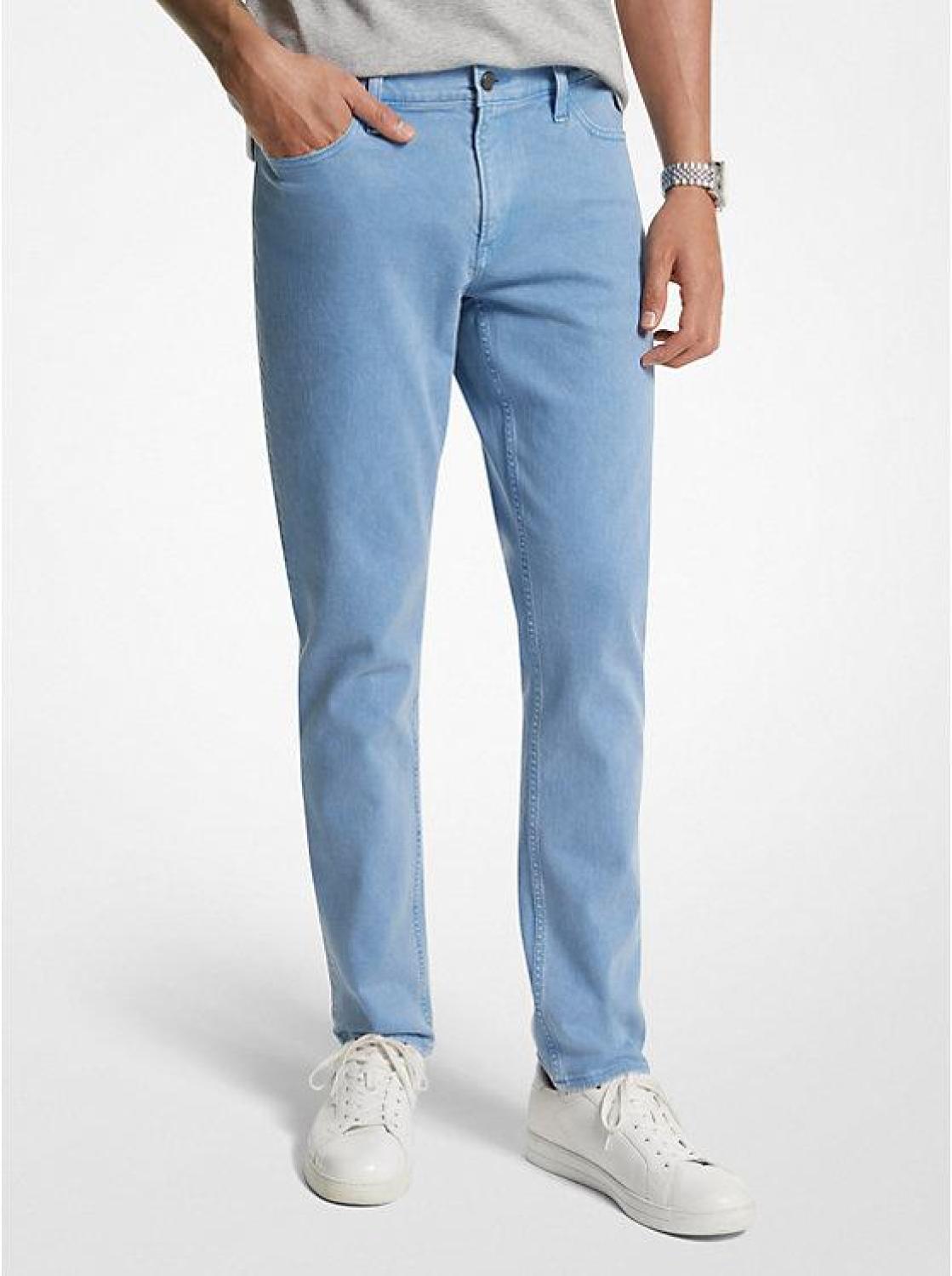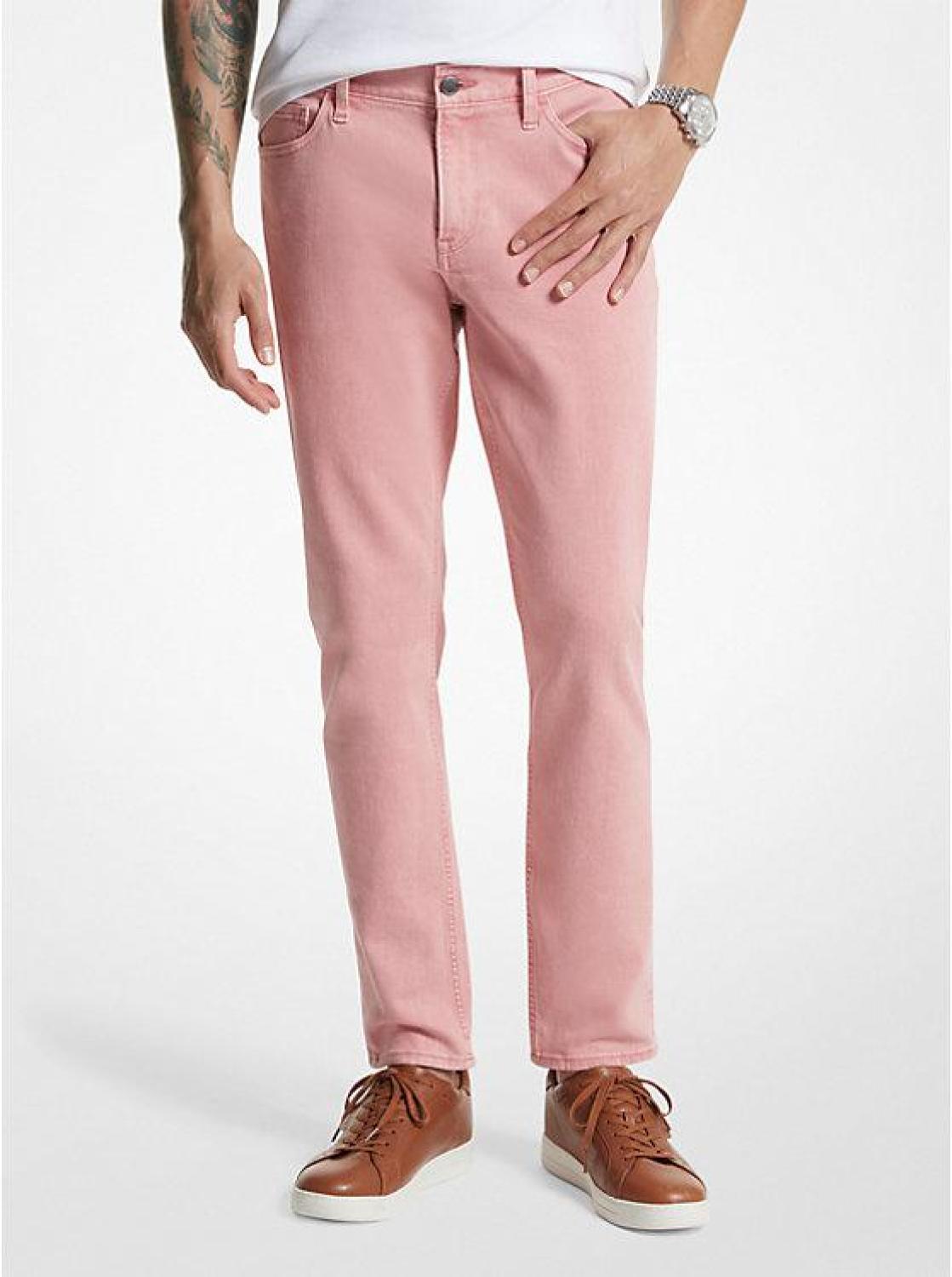 • Color theory. Cut in a slim fit, these five-pocket jeans feature a pigment-dyed wash for a unique splash of color. Dress them up with a crisp polo or wear them on the weekends with an easygoing pullover.