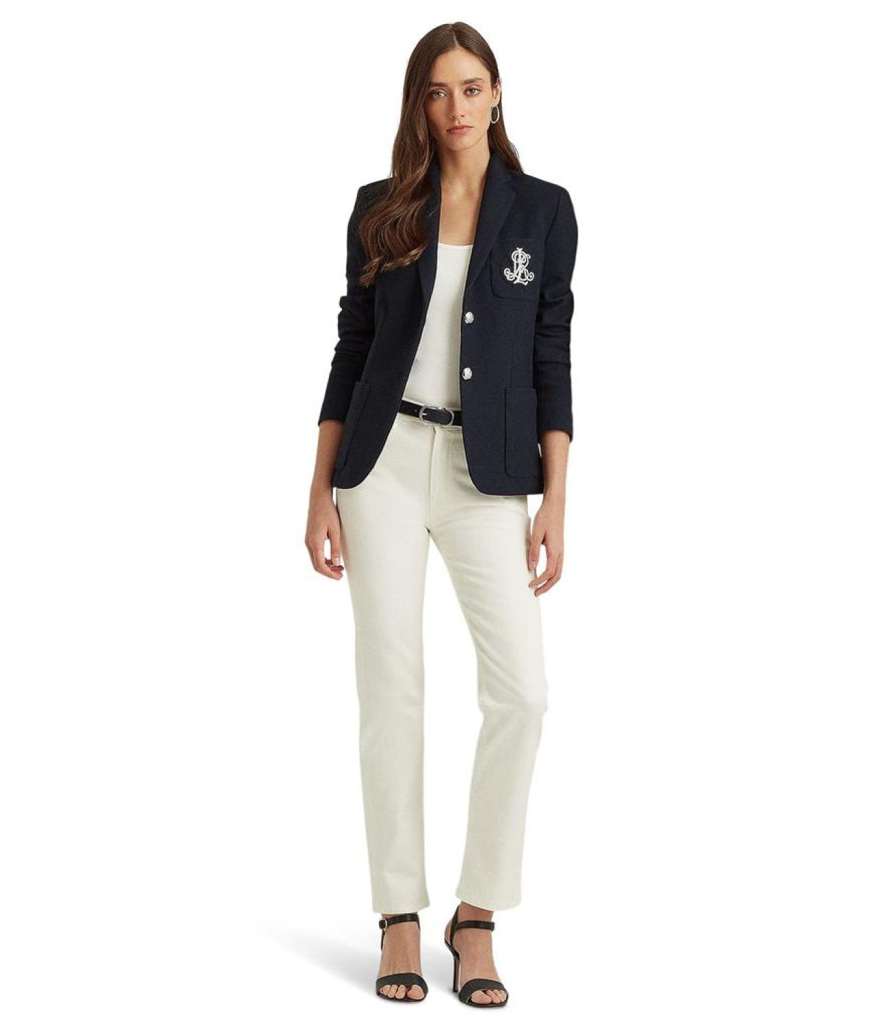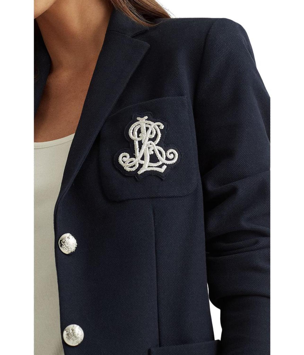 • Crafted for an all day comfort and style this LAUREN Ralph Lauren® Patch Jacquard Blazer features a single breasted collar, center two-button closure, long sleeves, chest patch pocket with LAUREN Ralph Lauren stitched logo design, front side slip pockets, and a straight hemline.