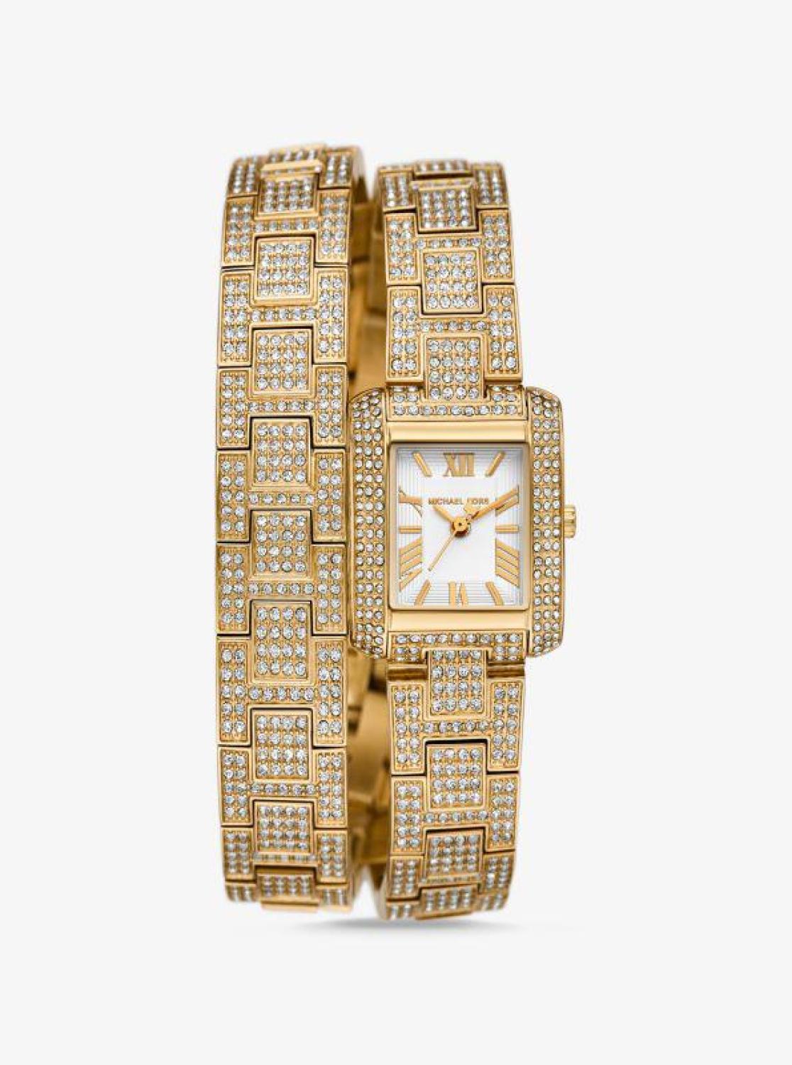Petite Emery Pavé Gold-Tone Double Wrap Watch