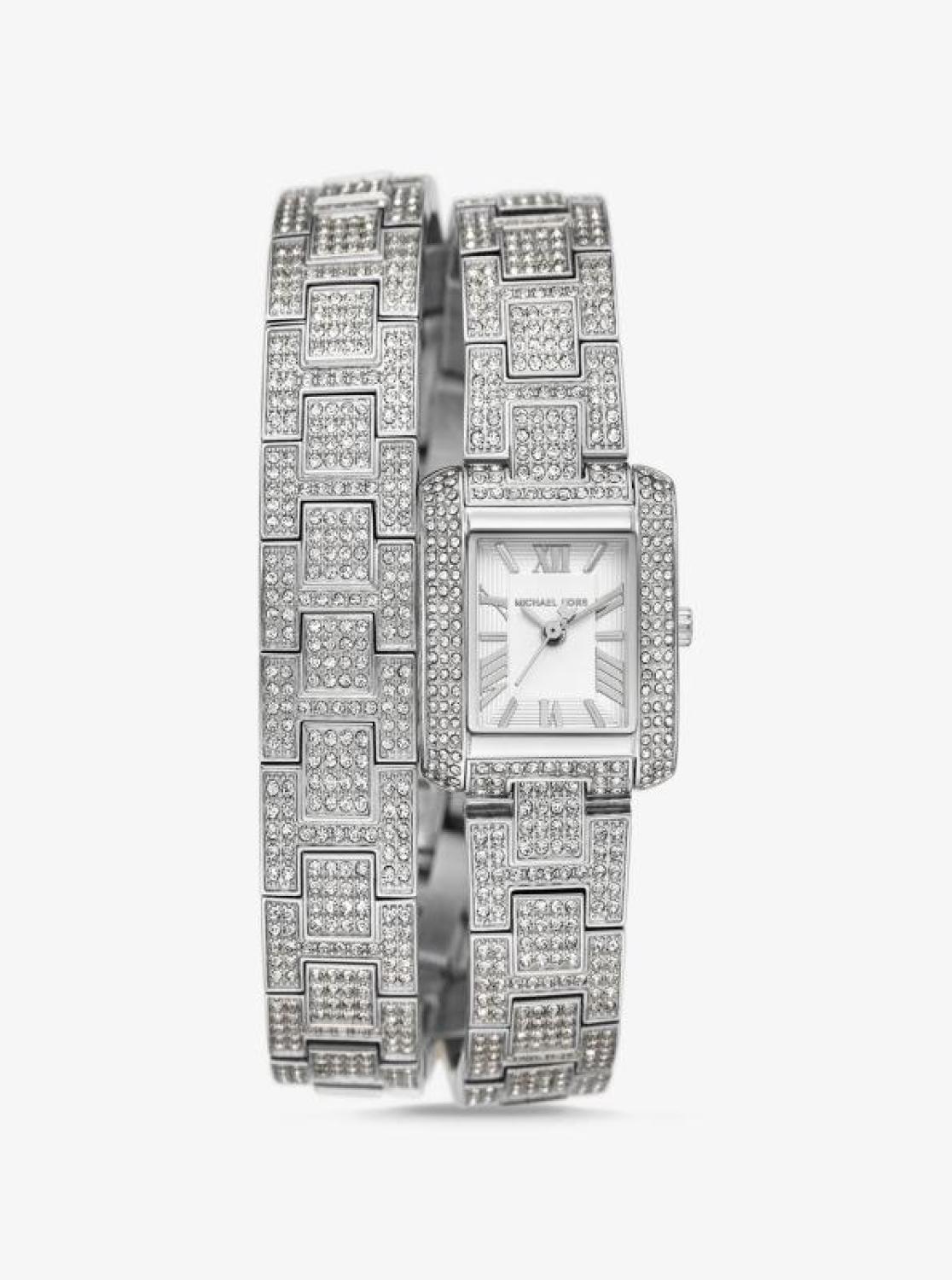 Petite Emery Pavé Silver-Tone Double Wrap Watch