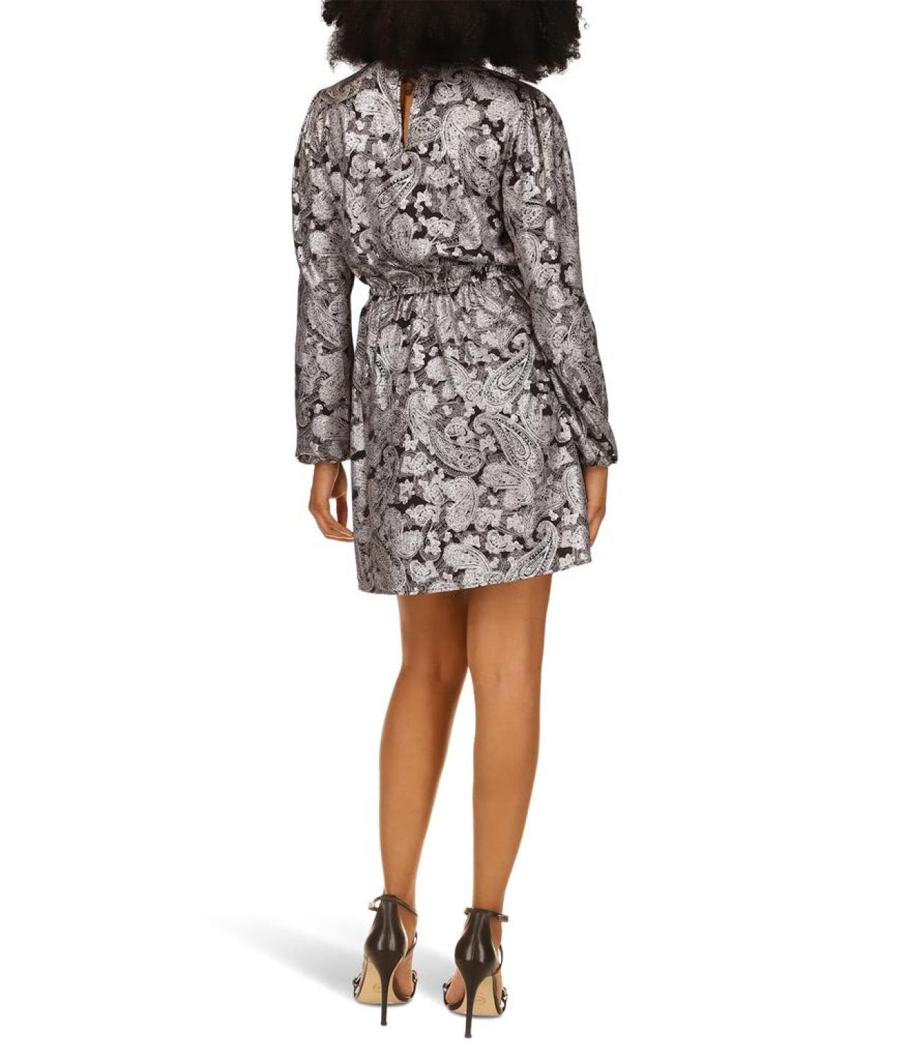 MICHAEL Michael Kors® Petite Foil Paisley Long Sleeve Flounce Dress hugs your body right and adds a flowy accent along with a gathered detailing on the waist.