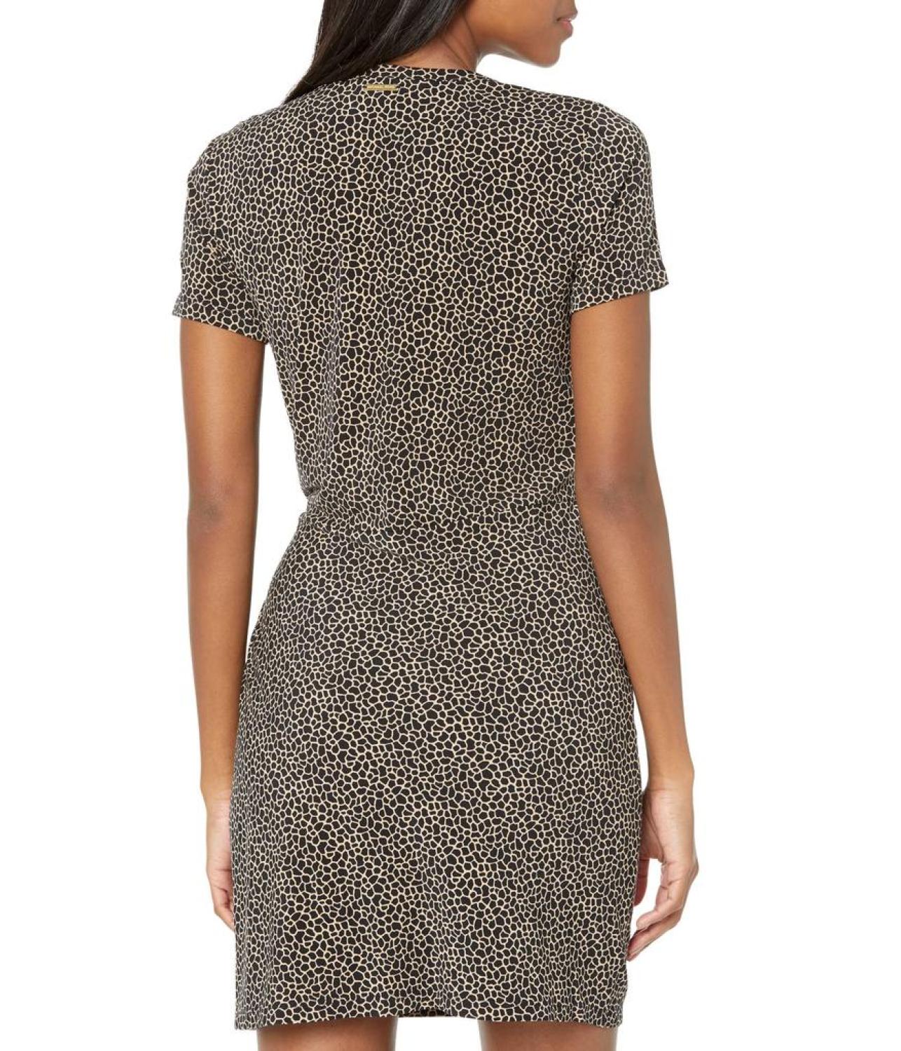 The chic MICHAEL Michael Kors® Petite Giraffe Twist Short Sleeve Mini Dress features a striking printed design throughout.