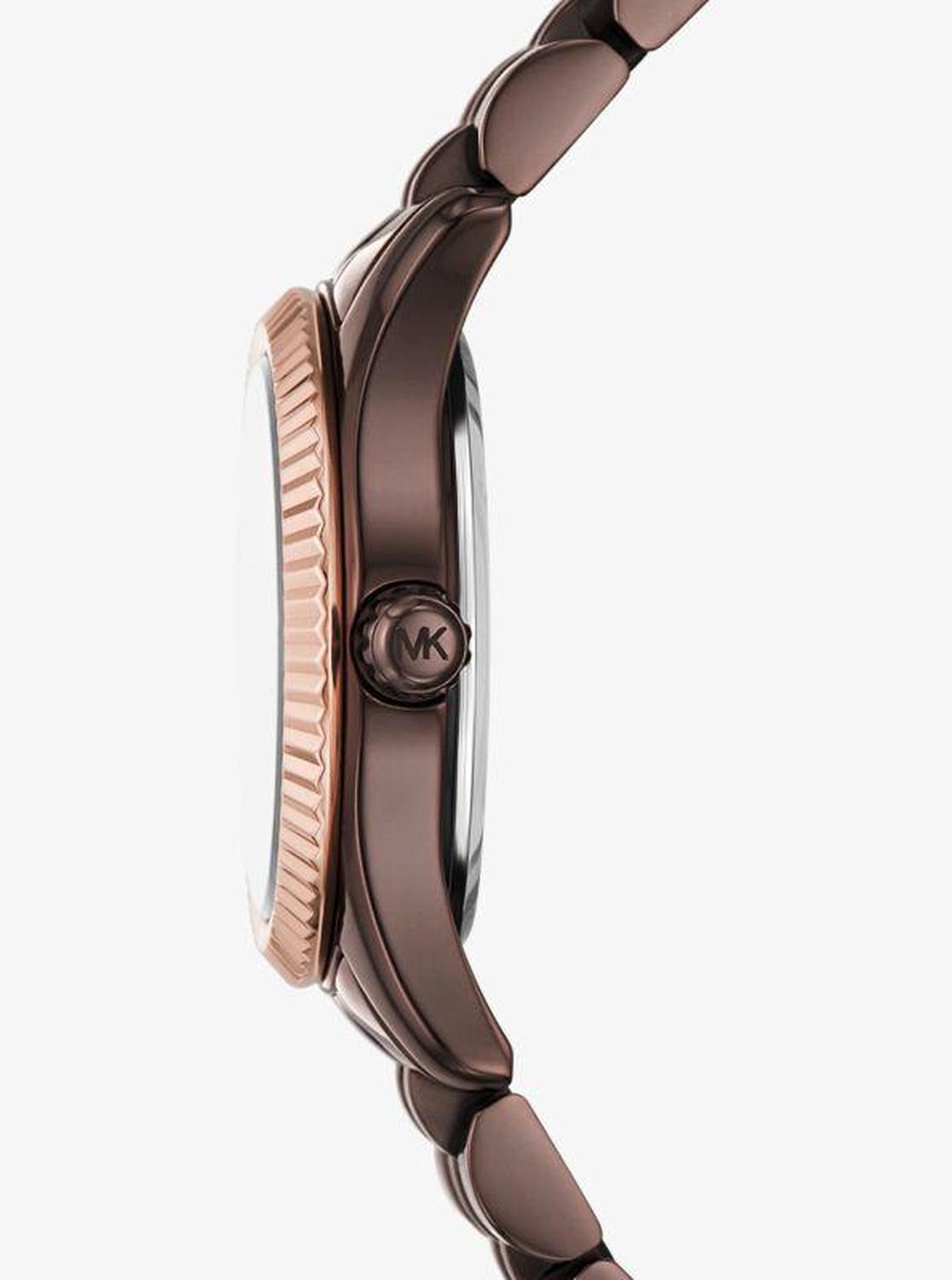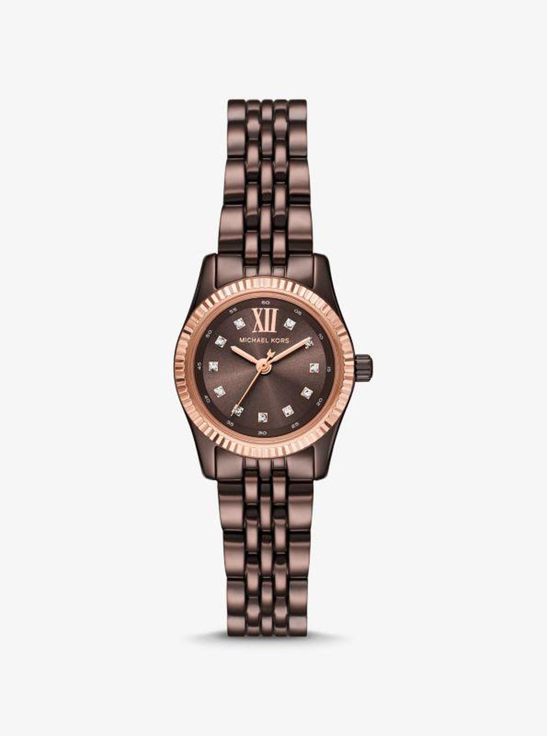 • The Lexington watch exudes everyday glamour. Made entirely of stainless steel, this mini timepiece boasts a round face with a beveled rose gold-tone topring and espresso-hued bracelet strap. Slip it on to give both day and night outfits a dose of sophisticated charm.