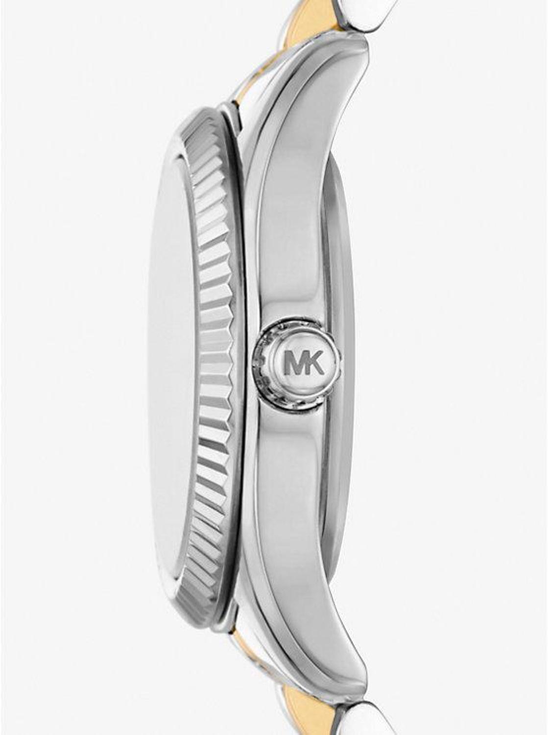 • The Lexington watch exudes everyday glamour with its silver and gold hues and sparkling pavé accents. Made entirely of stainless steel, this mini timepiece boasts a round face with a beveled topring and a two-tone bracelet strap. Slip it on to give both day and night outfits a dose of sophisticated charm.