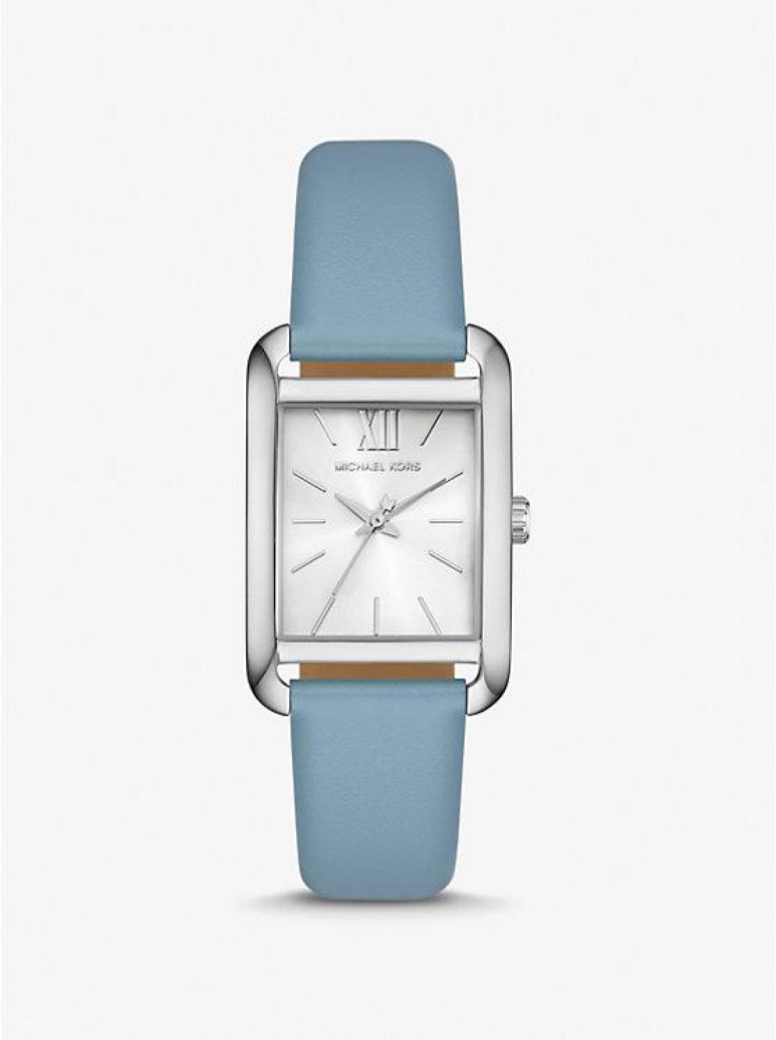 • The petite Monroe watch embodies modern glamour. Made from silver-tone stainless steel with a smooth leather strap, it features minimalist time stops and a sleek profile that sits daintily on the wrist. Dress it up by stacking it with similar pieces, or keep things simple and wear it solo.