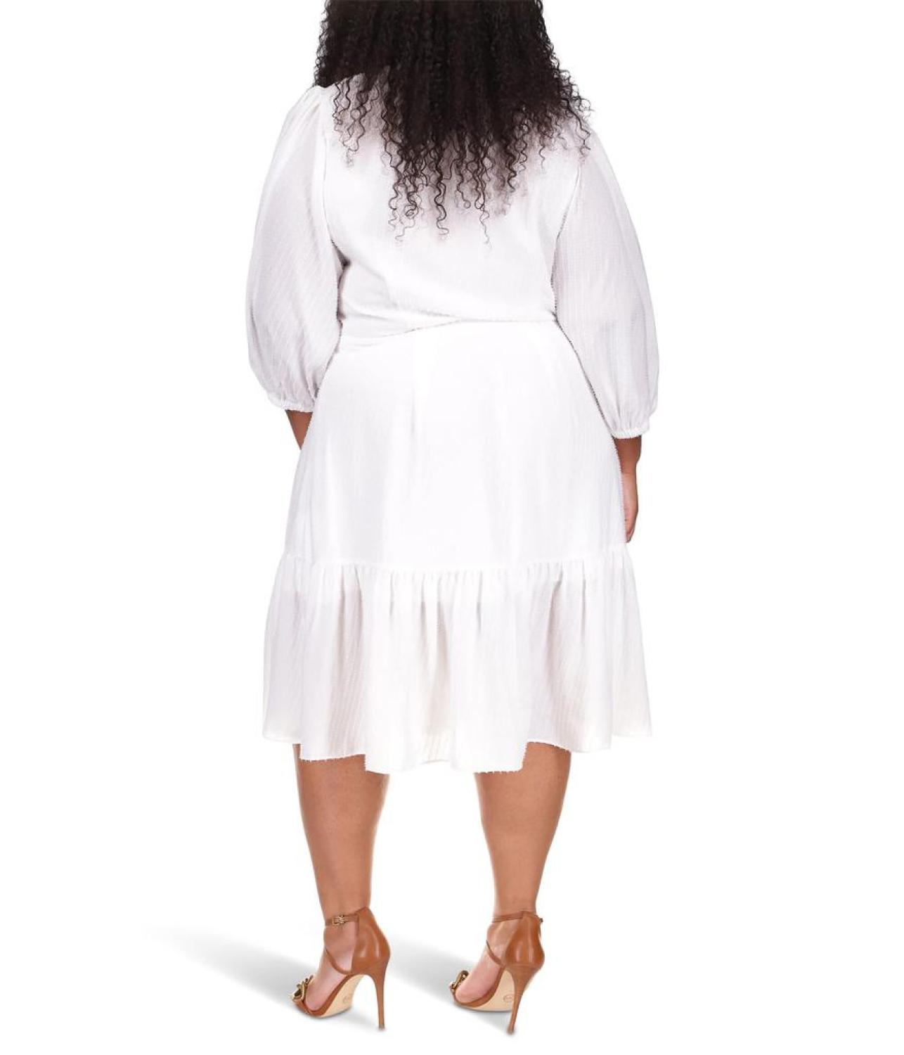 Look comfortable by donning the classy design of the MICHAEL Michael Kors® Plus Size Pinstripe Tie Midi Dress for a lasting impression.