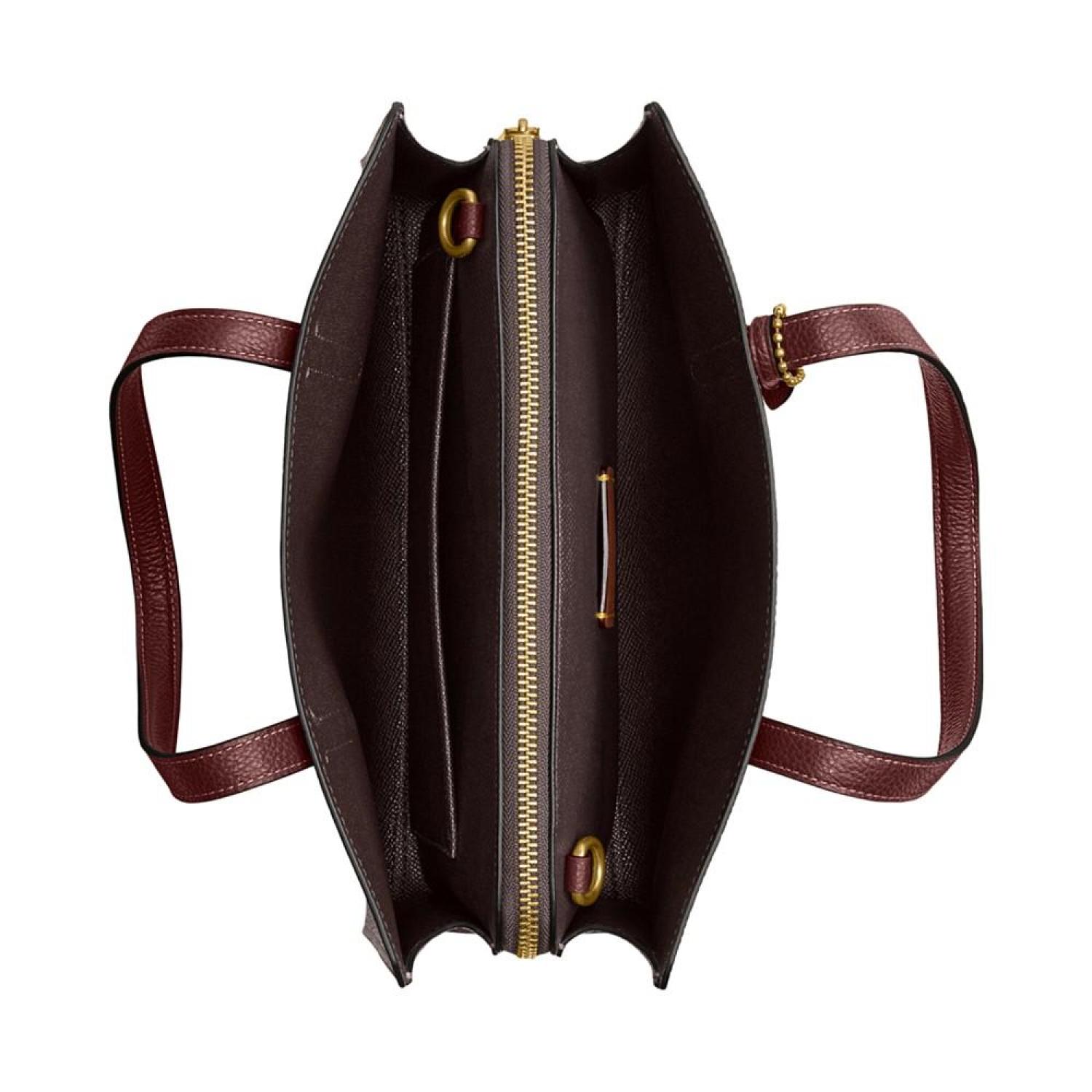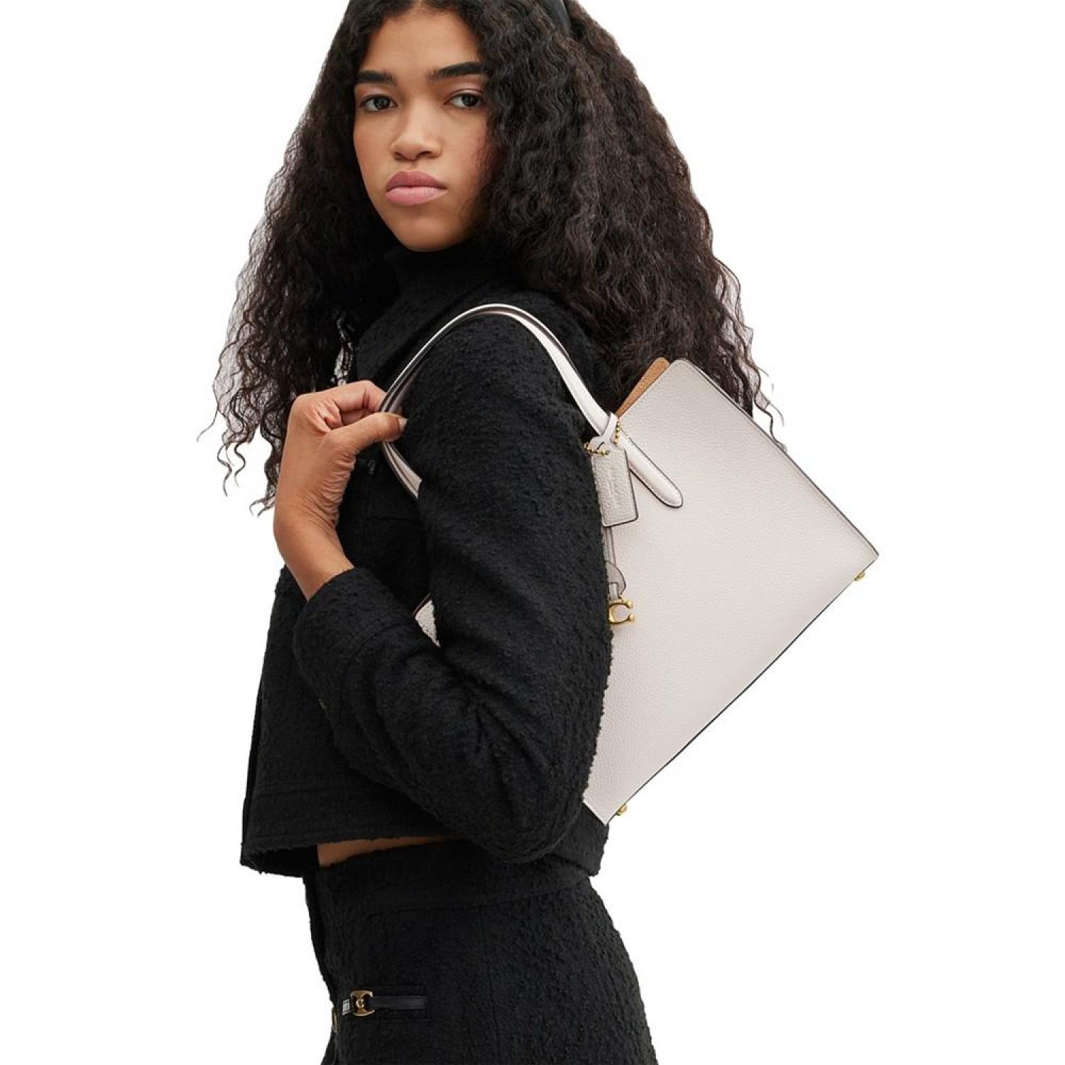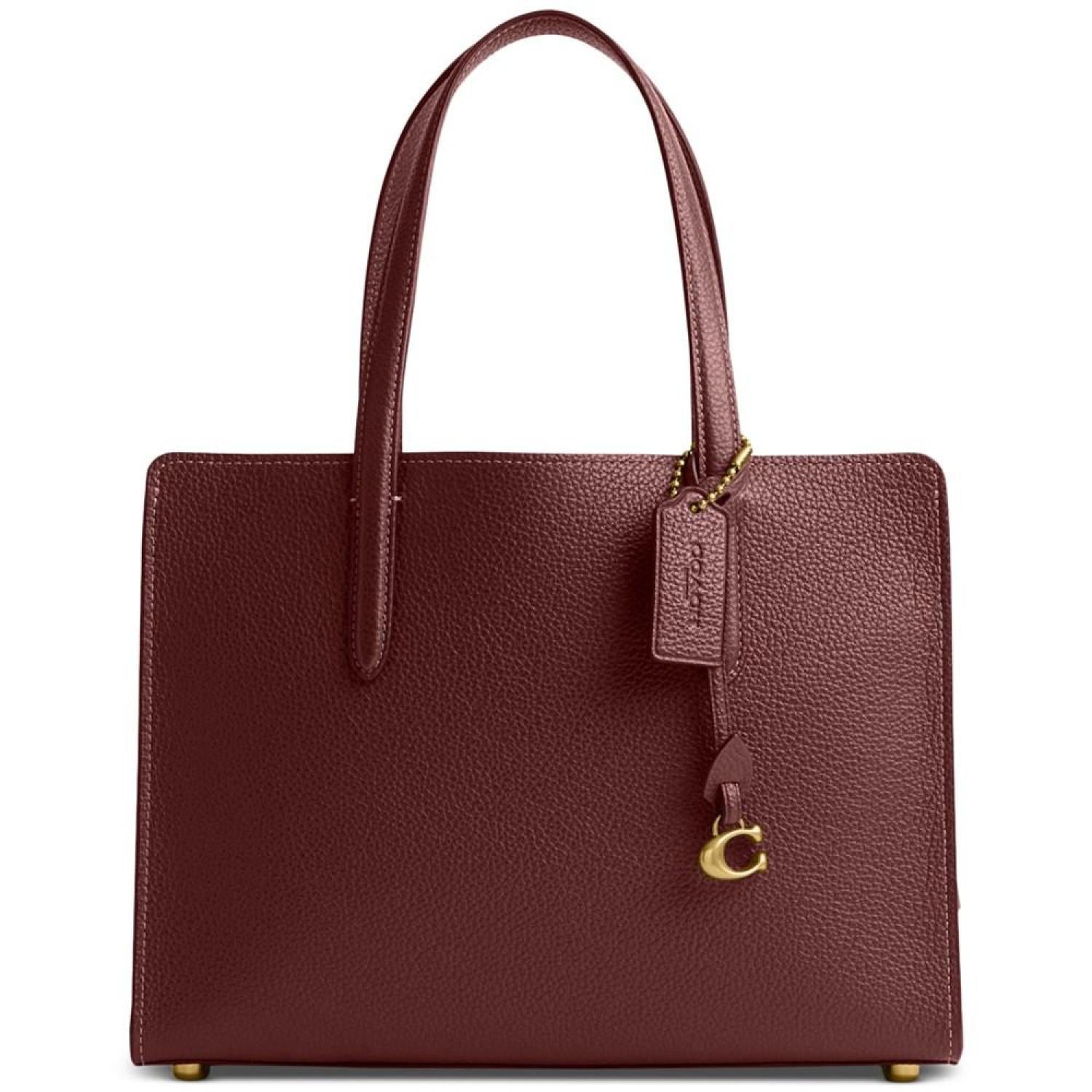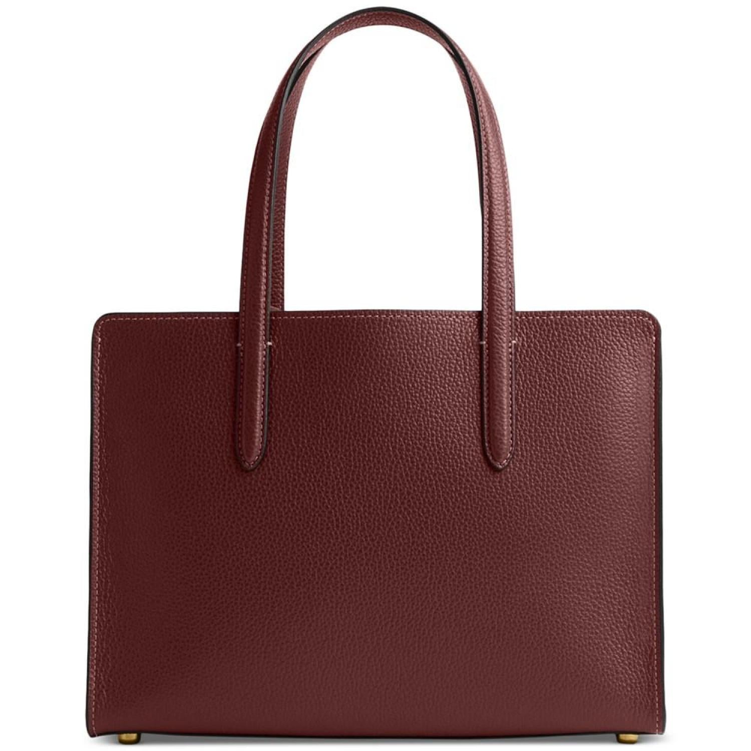 Add some classic COACH sophistication to your everyday with the Polished Pebble Leather Carter Carryall 28. Medium sized bag; 11"W x 8"H x 4-1/4"D (width is measured across the bottom of handbag); 1.76 lbs. approx. weight Silhouette is based off 5'9" model 6"L handles; 21-1/2"L removable strap Open top Brass-tone hardware Interior center zip compartment & multifunction pocket Leather Spot clean Imported