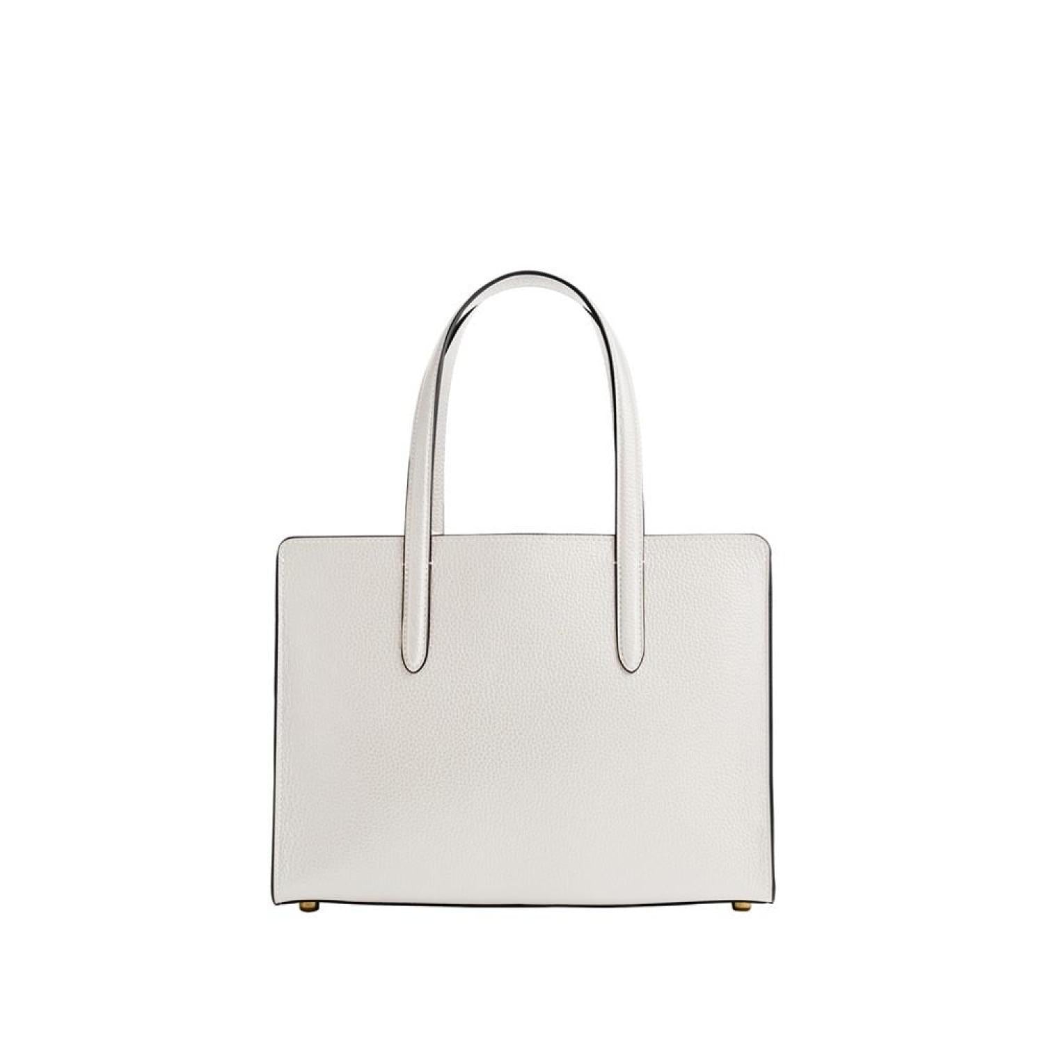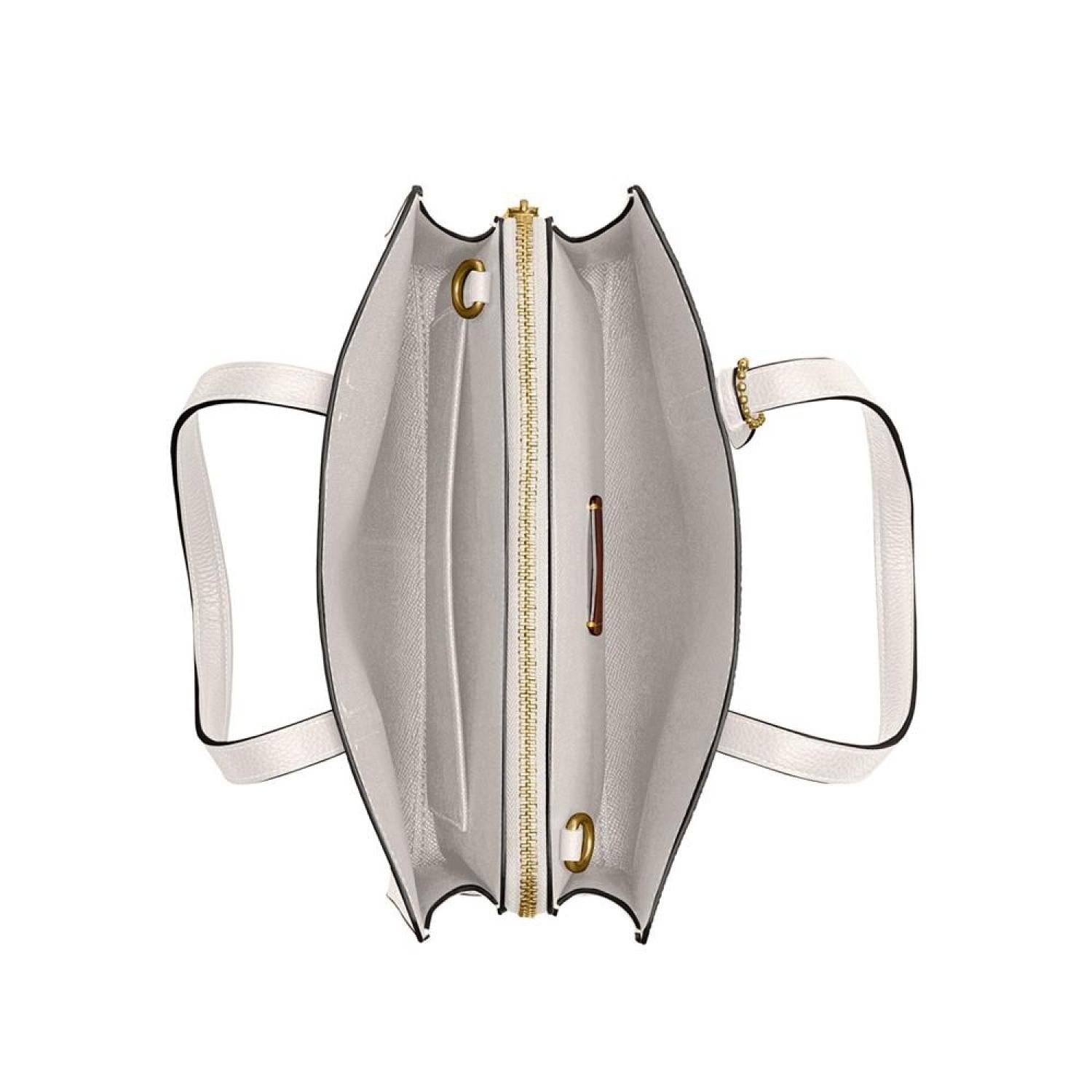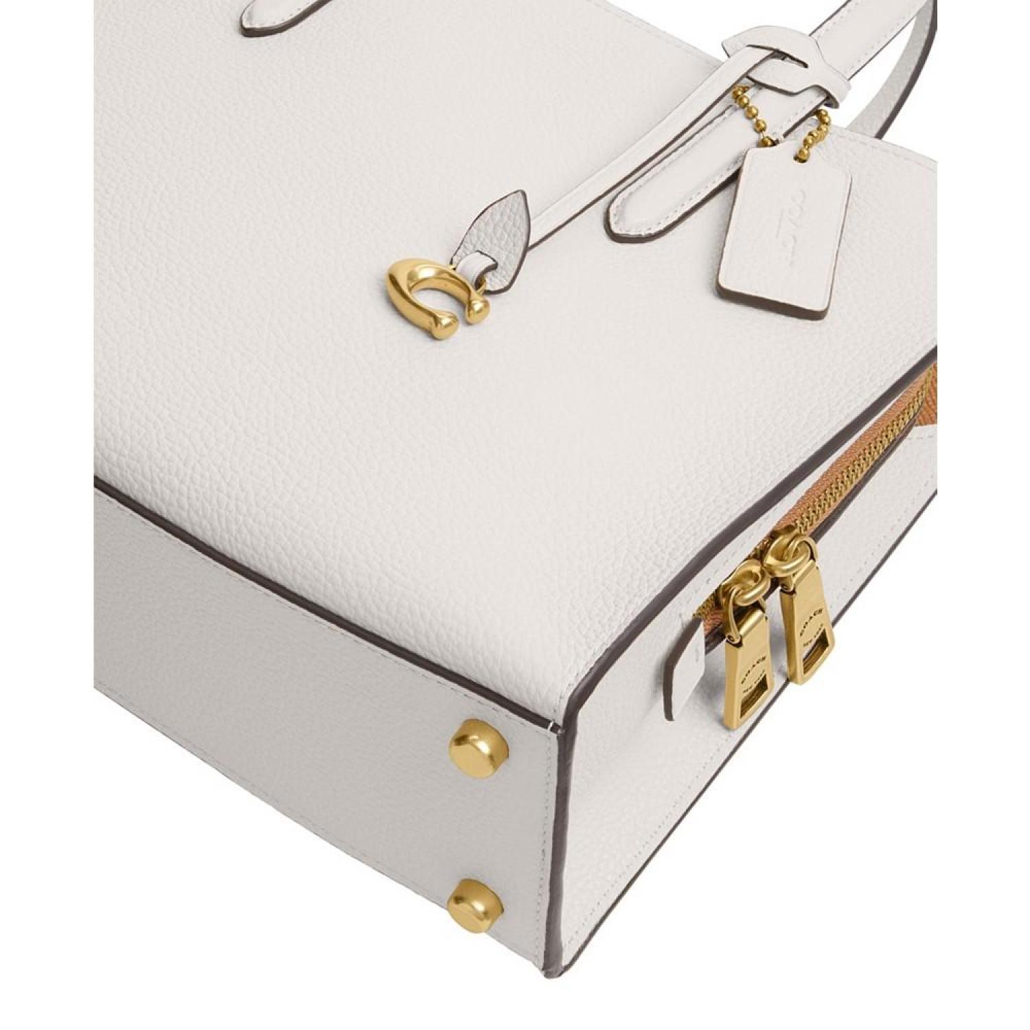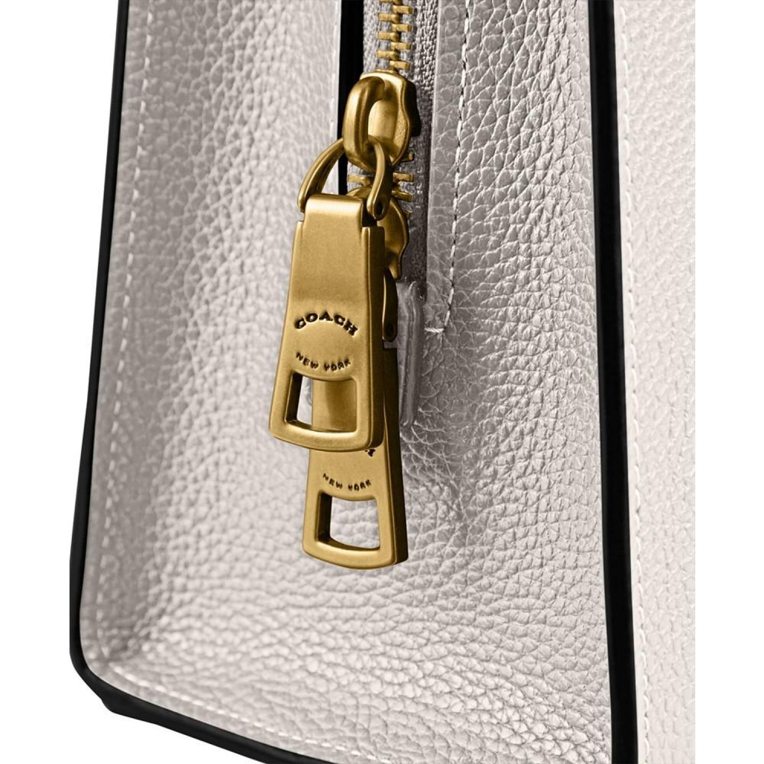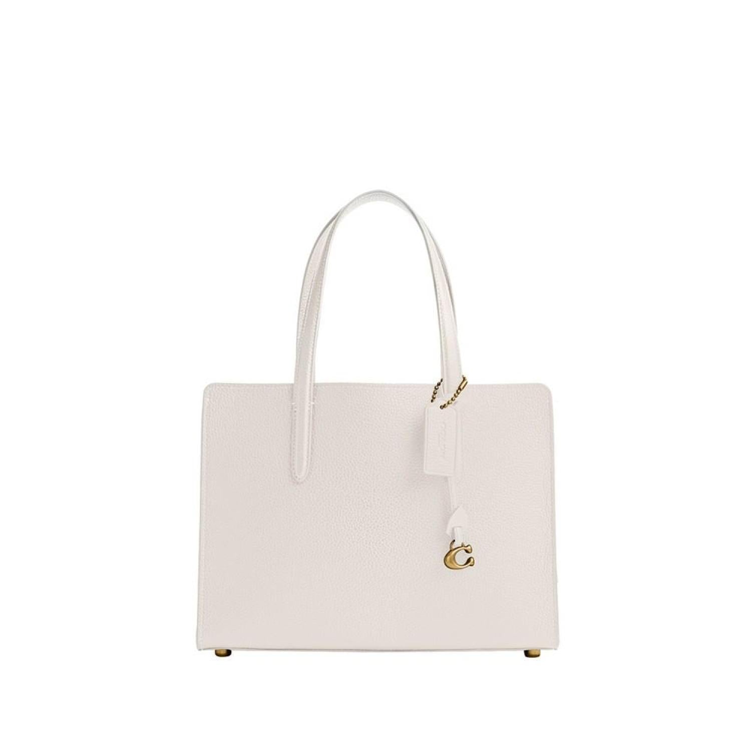 Add some classic COACH sophistication to your everyday with the Polished Pebble Leather Carter Carryall 28. Medium sized bag; 11"W x 8"H x 4-1/4"D (width is measured across the bottom of handbag); 1.76 lbs. approx. weight Silhouette is based off 5'9" model 6"L handles; 21-1/2"L removable strap Open top Brass-tone hardware Interior center zip compartment & multifunction pocket Leather Spot clean Imported