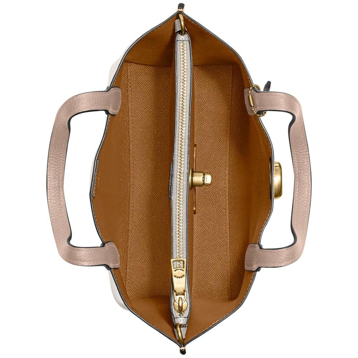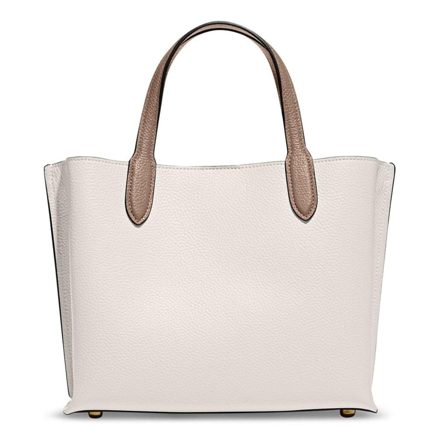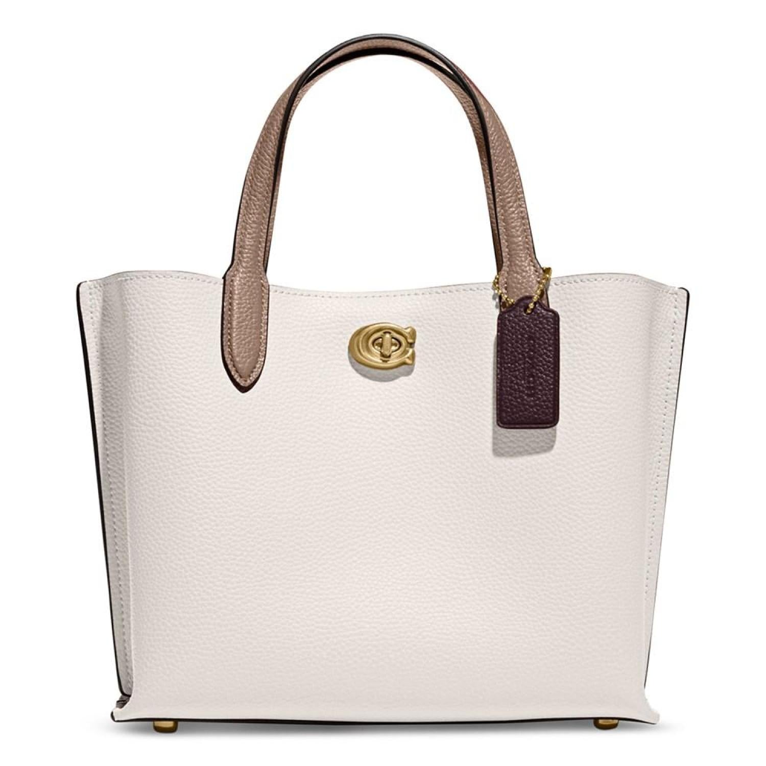• Coach's Colorblock Leather Willow Tote 24 adds a pop of color to your look. Personalize your style with the detachable crossbody strap and multiple color choices while your belongings stay secure with the secure closures.
