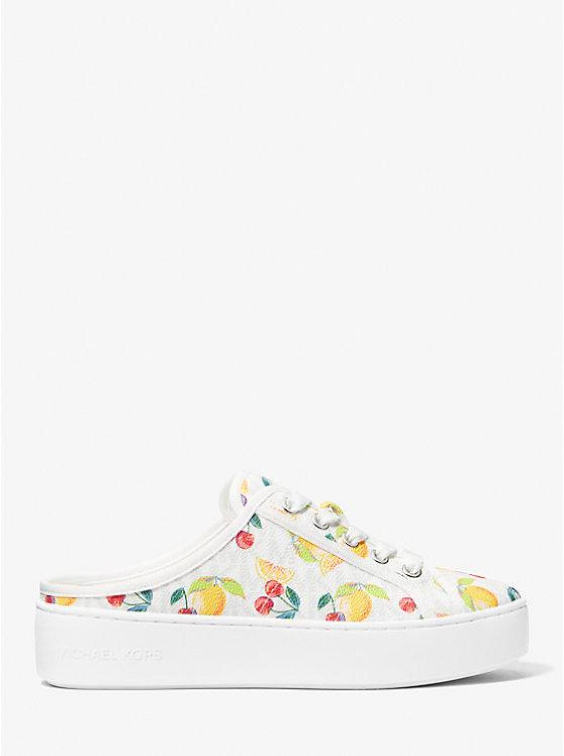 • Our newest addition to the Poppy family breathes fresh life into traditional sneaker silhouettes. Defined by a slip-on shape and set on a chunky rubber sole, this eye-catching style features a tropical fruit print overlaid atop our classic Signature print. Team it with complementing accessories for spring.