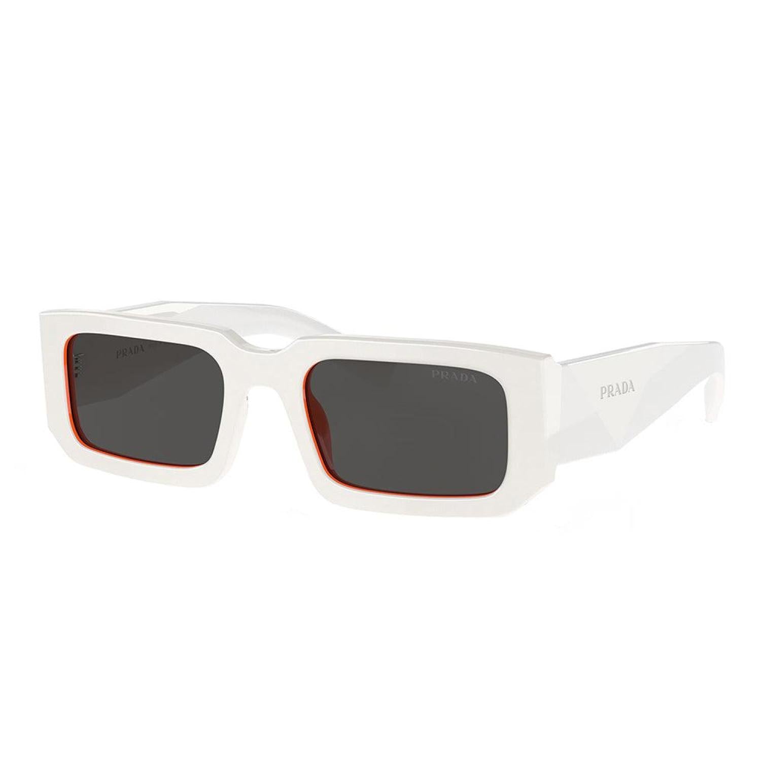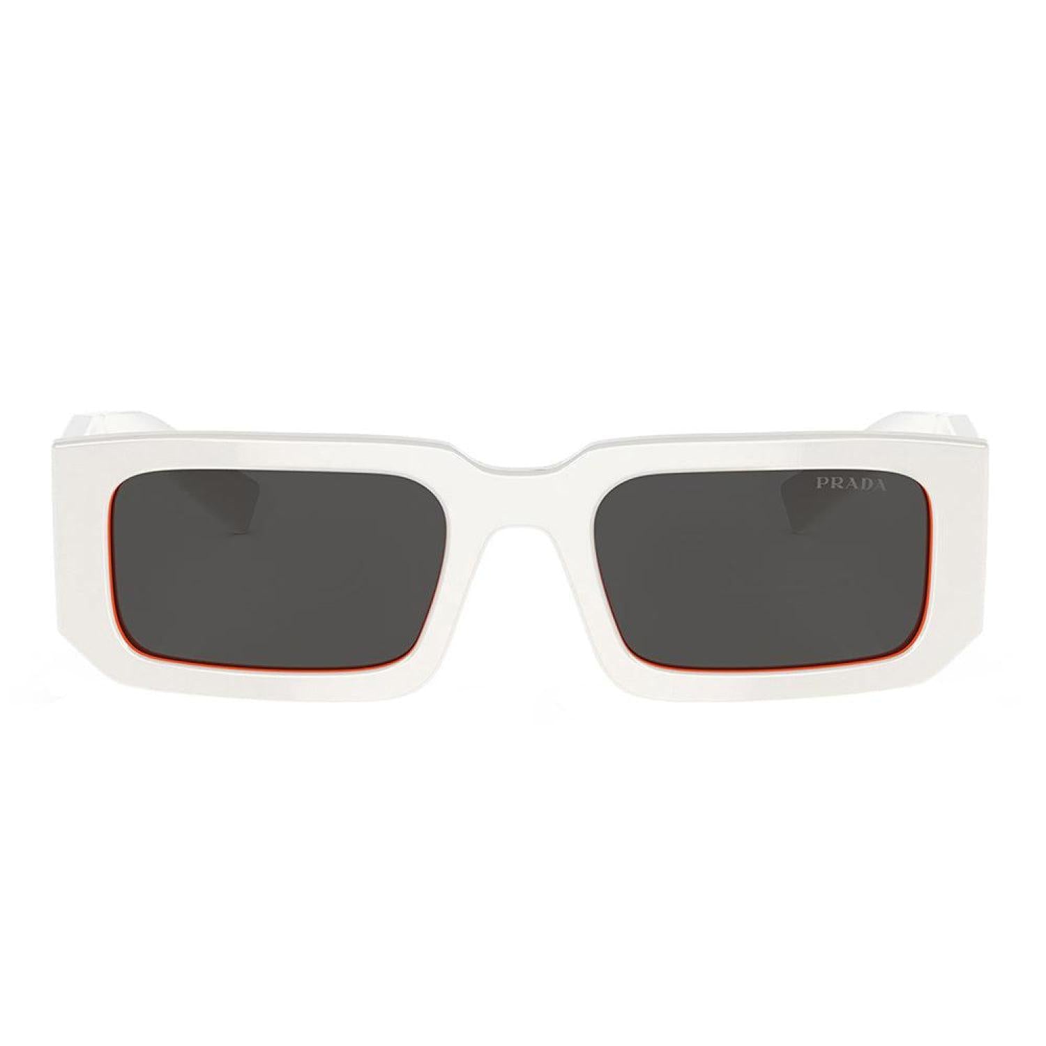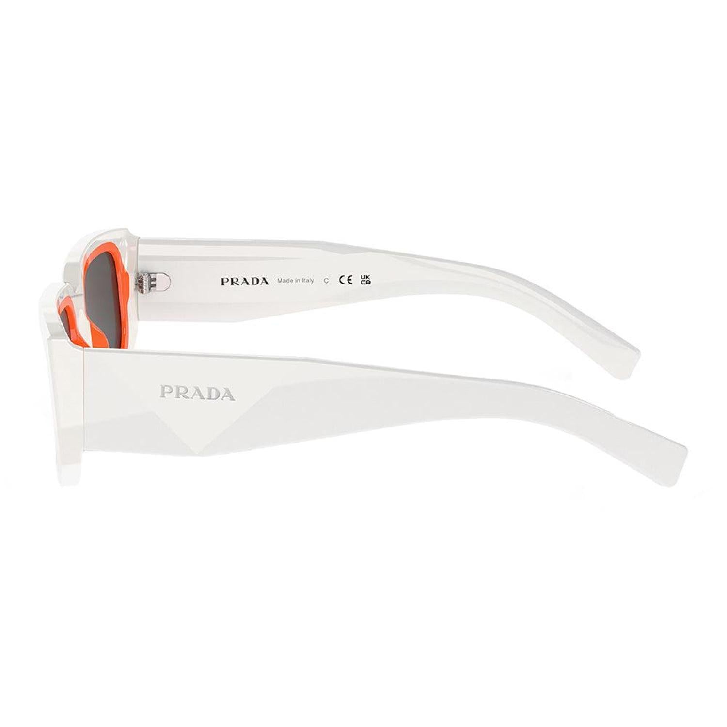Prada PR 06YS 17M5S0 53mm Unisex Talc/Orange Grey Lens SunglassesFrame Color - Talc/OrangeFrame Style - RectangleFrame Material - PlasticLens Color - Grey LensProtection - UV ProtectedIncludes - Prada box, case, cloth and paperwork *may vary from pictureSize - Lens 53 mm x bridge 21 mm x arms 145 mm All measurements may vary